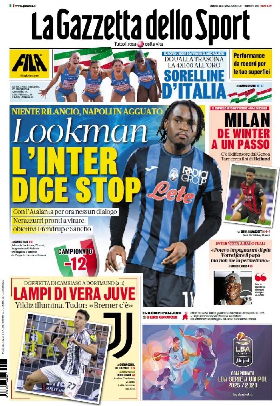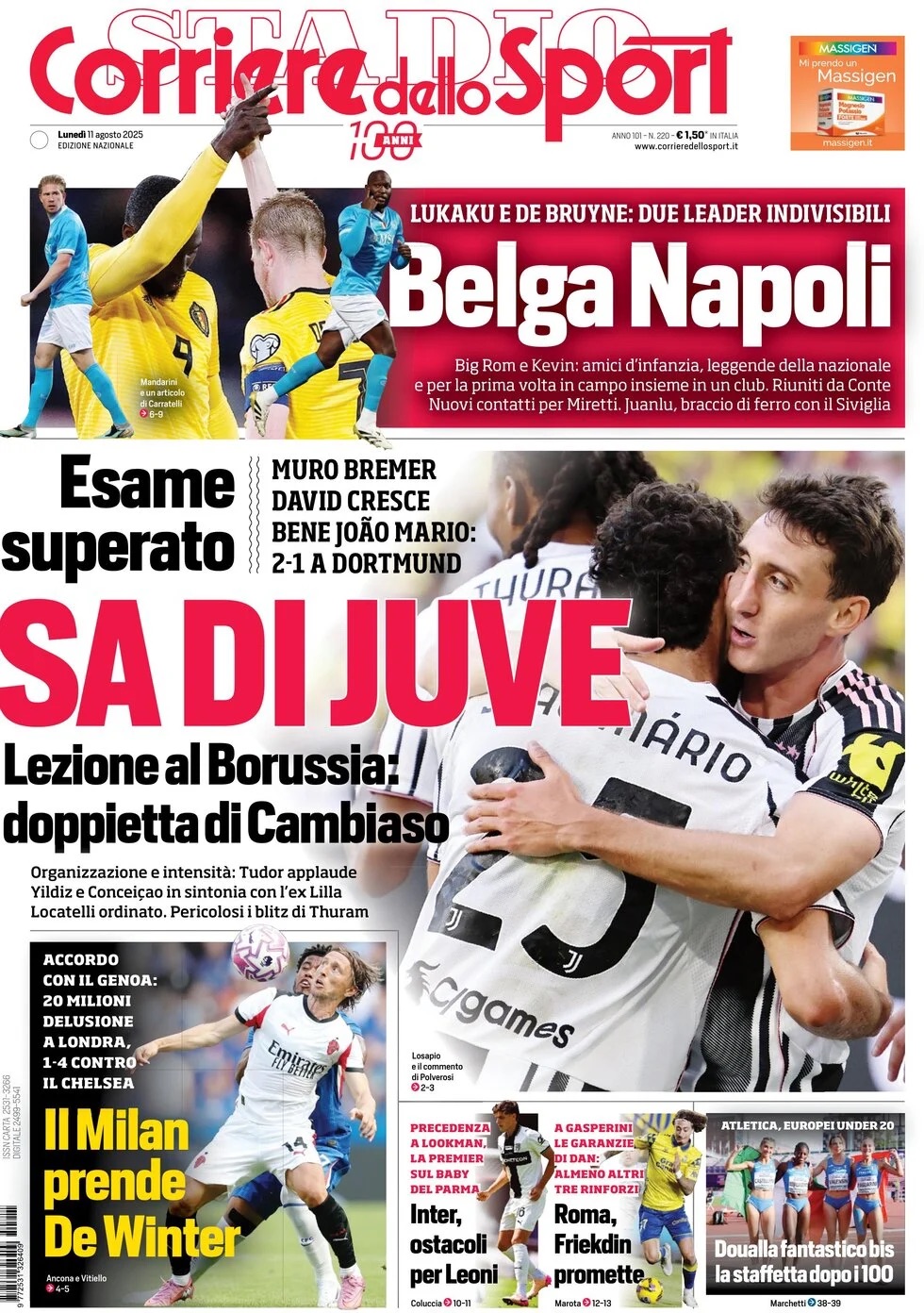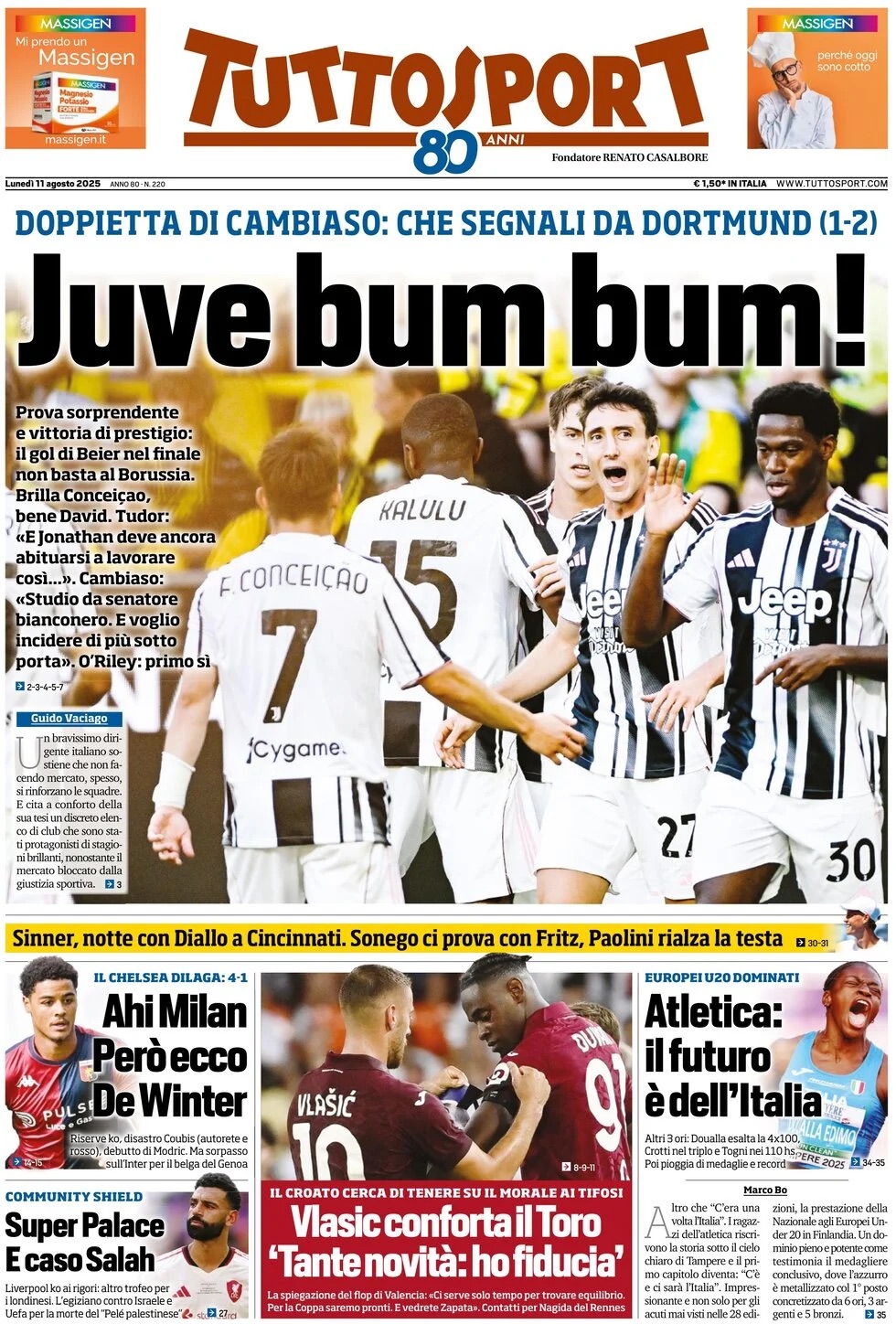 Queste le prime pagine dei quotidiani sportivi italiani di oggi, lunedì 11 agosto 2025.