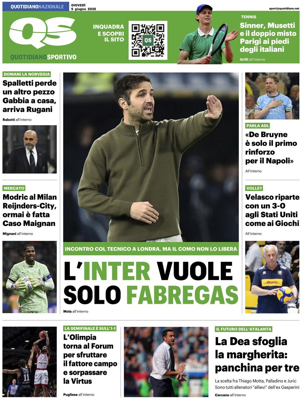 Queste le prime pagine dei maggiori quotidiani sportivi in edicola quest'oggi, giovedì 5 giugno 2025, in Italia.