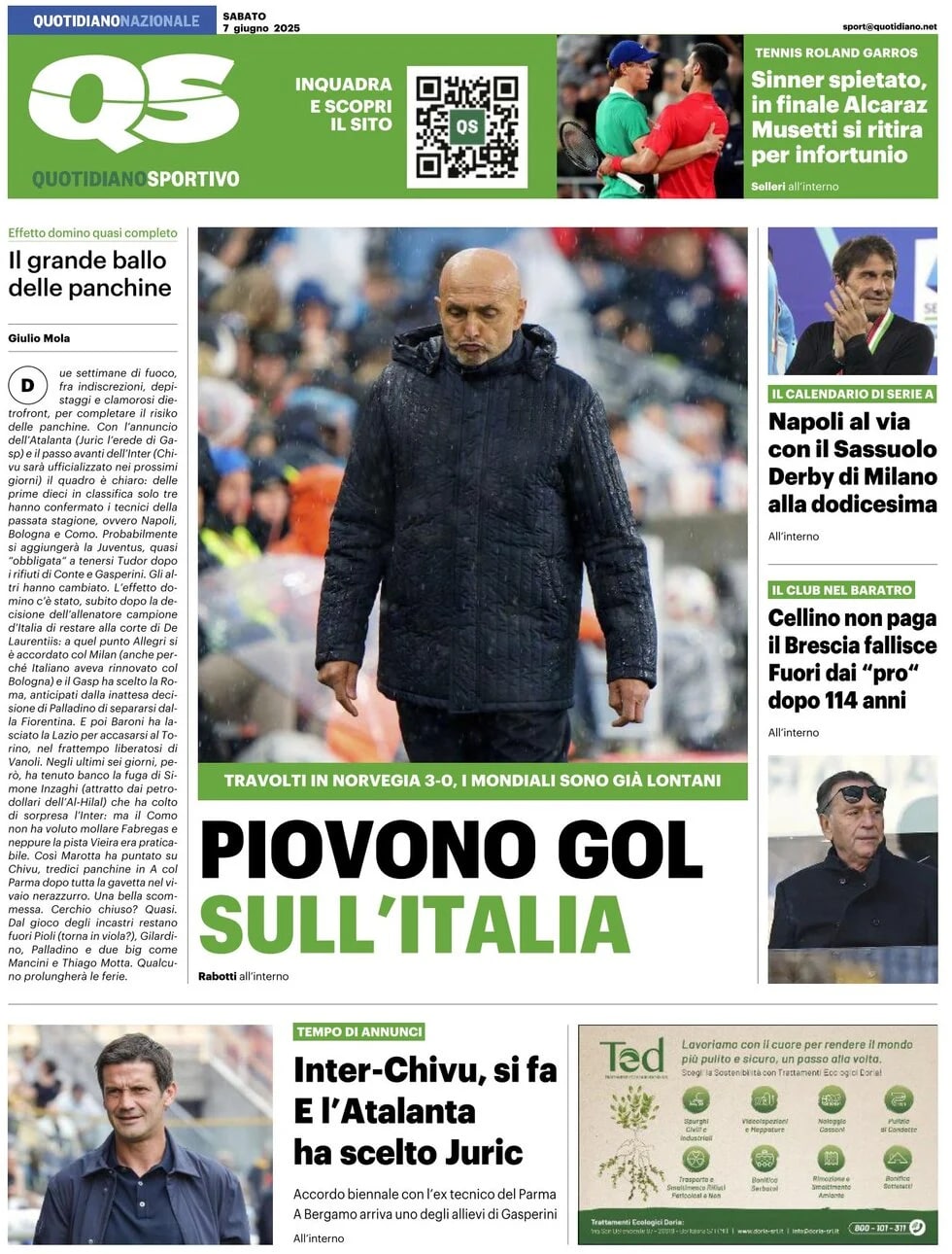 Queste le prime pagine dei principali quotidiani sportivi nazionali in edicola oggi, sabato 7 giugno 2025, in Italia.