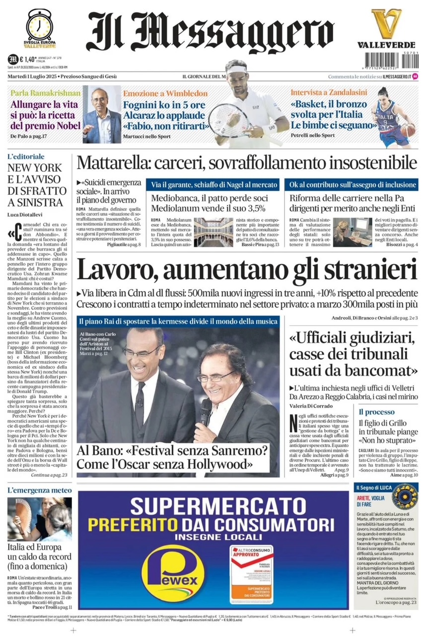 Queste le prime pagine dei quotidiani sportivi in edicola oggi, martedì 1 luglio 2025.