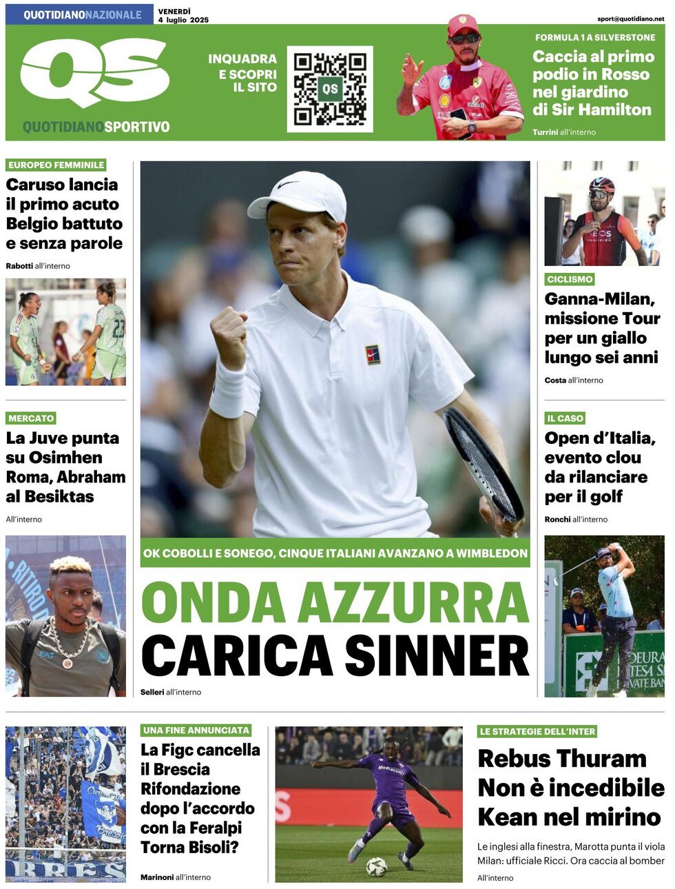 Queste le prime pagine dei quotidiani sportivi in edicola oggi, venerdì 4 luglio 2025.