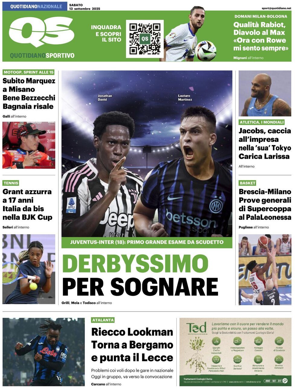 Queste le prime pagine dei quotidiani sportivi in edicola oggi, sabato 13 settembre 2025.