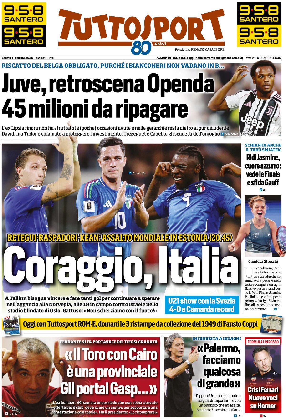 Queste le prime pagine dei quotidiani sportivi italiani in edicola oggi, sabato 11 ottobre 2025.