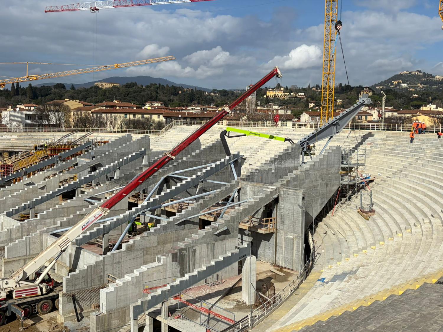 Restyling Franchi, le immagini della trave che sorreggerà la nuova Curva Fiesole