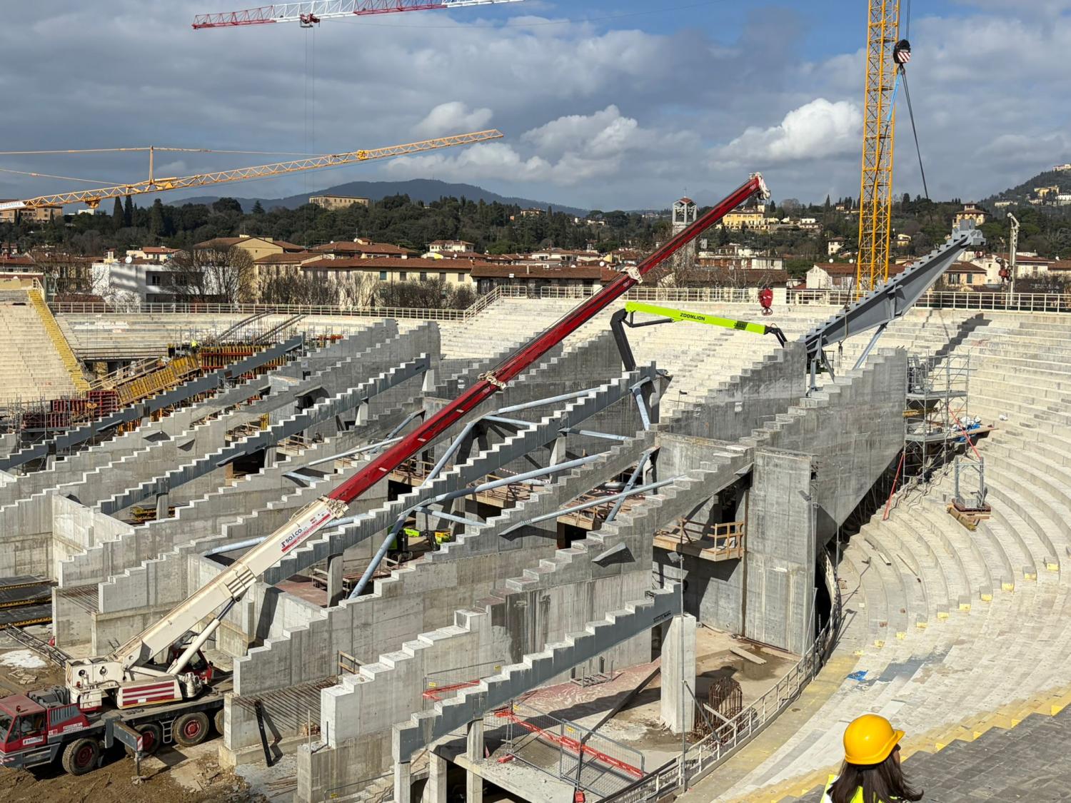 È stata una mattinata importante per la Fiorentina non solo lato campo, con la rifinitura della squadra di Paolo Vanoli al Viola Park in vista della sfida di domani in Conference League contro lo Jagiellonia, ma anche sul fronte stadio, con il restyling dell'Artemio Franchi che ha vissuto oggi una tappa importante. Come infatti testimoniato anche dalle parole della sindaca Sara Funaro, è stata posta oggi la maxi trave in acciaio che sorreggerà le nuove gradinate della Curva Fiesole. Queste le immagini direttamente dal Franchi: