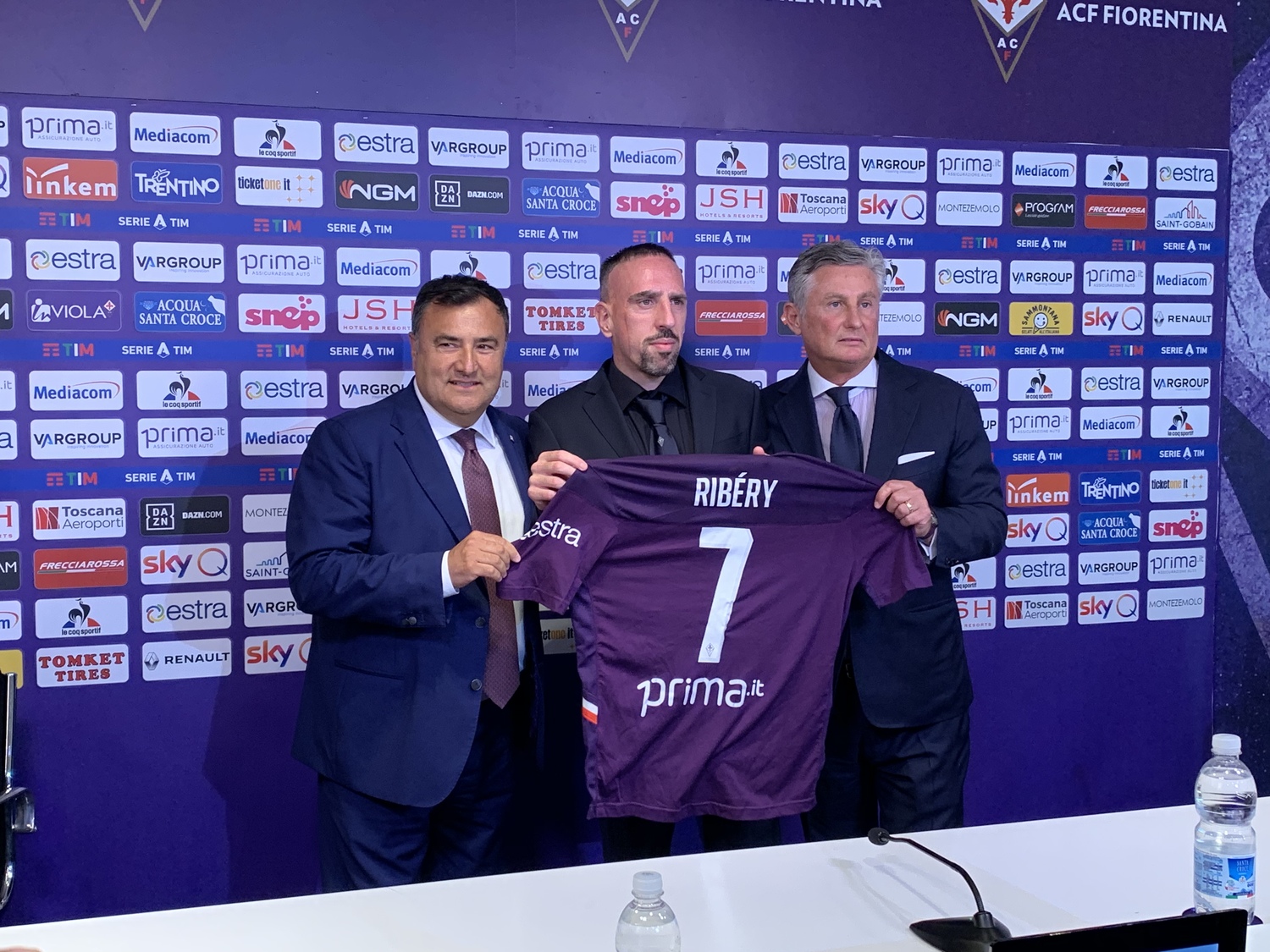 Dopo il toccante addio nel 2019 al club tedesco all'età di 36 anni con un record di 24 titoli di club in 12 anni, l'originario di Boulogne-sur-Mer decise che era ancora presto anche solo per pensare alla data del ritiro e, bisognoso di nuovi stimoli, sbarcò a Firenze facendo esplodere tutto il tifo viola. Il 21 agosto 2019 Ribery arrivò all'aeroporto di Peretola inondato da tantissimi tifosi del club gigliato, dimostrando subito grande passione e voglia di dare il massimo. Pochi giorni dopo il francese fu presentato all'Artemio Franchi in pieno stile americano, come anche già fatto in precedenza con Mario Gomez. L'arrivo del francese in terra toscana è stato architettato dal presidente Rocco Commiso,che si disse onorato di aver portato un giocatore di questa caratura alla Fiorentina.