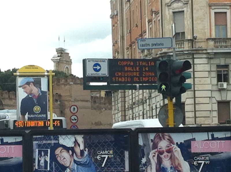 Indicazioni per i tifosi che in massa si stanno recando a Roma per seguire la finale di Coppa Italia. Dalle ore 14:00 infatti, la zona intorno allo stadio Olimpico sarà chiusa al traffico.