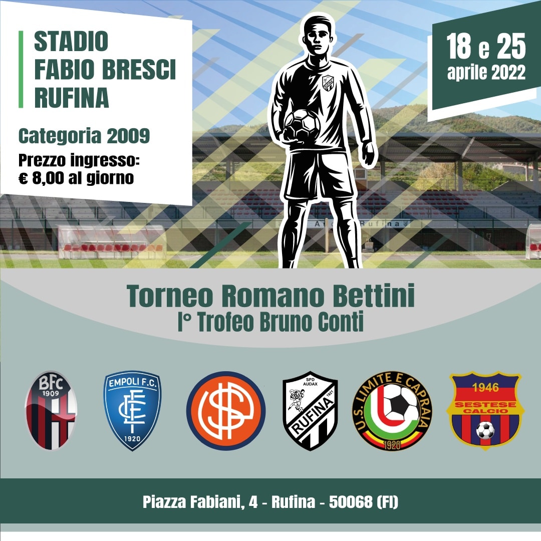 Due giornate di sport e divertimento a Rufina, il 18 e il 25 aprile, nel ricordo di due uomini di sport che il calcio fiorentino (e non solo) ha mai dimenticato, Romano Bettini e Bruno Conti. Conti, fiorentino doc, aveva 62 anni quando nel 2018 un male incurabile lo ha portato via all'affetto dei suoi cari. Era stato prima calciatore (ha militato anche nelle giovanili viola), poi allenatore e dirigente in tante squadre fiorentine tra cui la Salese e l'Audax Rufina. Romano Bettini è stato massaggiatore della rappresentativa Juniores Femminile Campione d'Italia 2017 e, nella sua carriera di sportivo, ha avuto anche una lunga militanza proprio nell'Audax Rufina, con cui ha collaborato fino a quando la malattia non ha avuto il sopravvento. Il 18 e 25 aprile (con le finali e le premiazioni con le famiglie) appunto si svolgeranno allo stadio "Fabio Bresci" di Rufina il torneo "Romano Bettini" e "1° trofeo Bruno Conti" riservato ai 2009. Parteciperanno le squadre di Bologna, Empoli, Pistoiese, Limite e Capraia 1920 e Sestese Calcio.