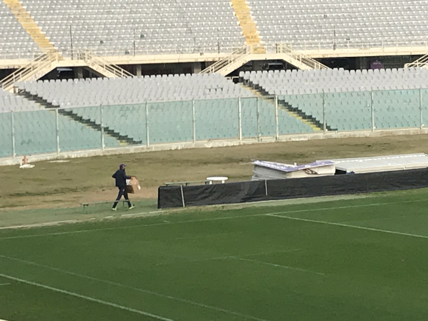 15:09 - Ecco che arriva anche l'allenatore viola Stefano Pioli per cominciare a sistemare il campo per l'allenamento