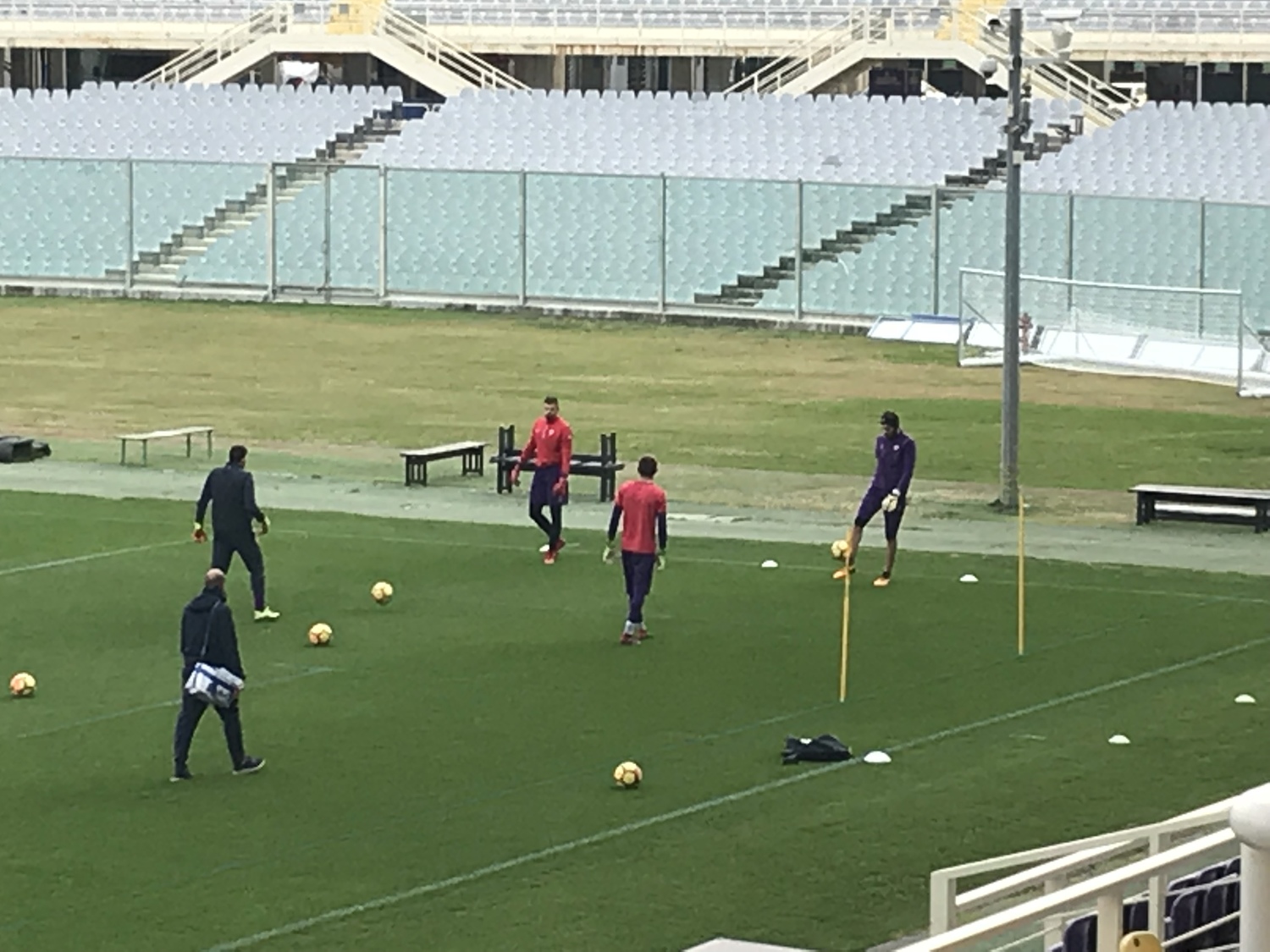 15:40 - Babacar, Chiesa, Thereau, Eysseric, Vereotut, Olivera, Benassi, Gaspar, Badelj, Milenkovic e Dragowski da una parte. Cristoforo, Saponara, Simeone, Lo Faso, Biraghi, Laurini, Sanchez, Astori, Pezzella, Zekhnini e Sportiello dall'altra, con la pettorina