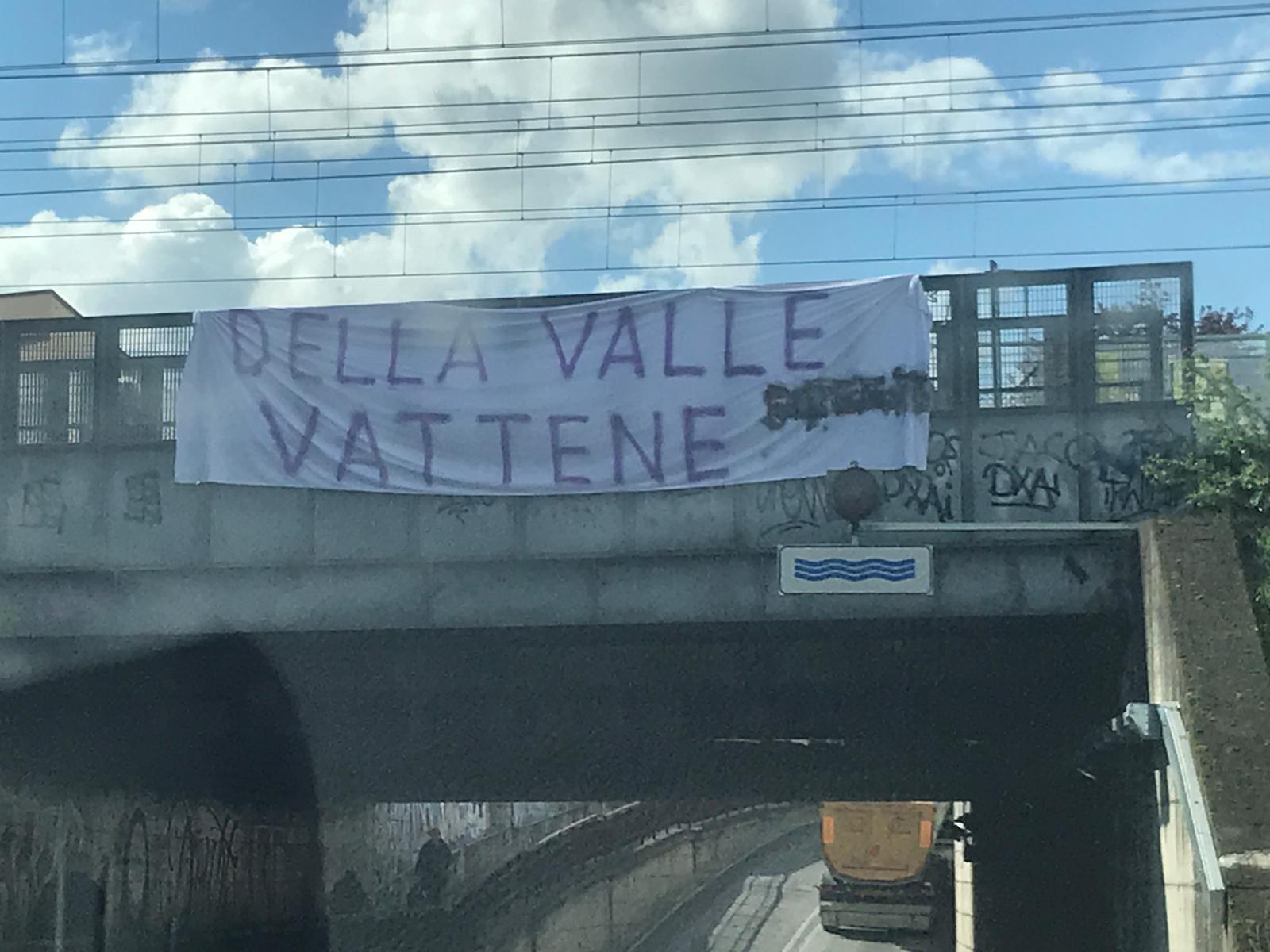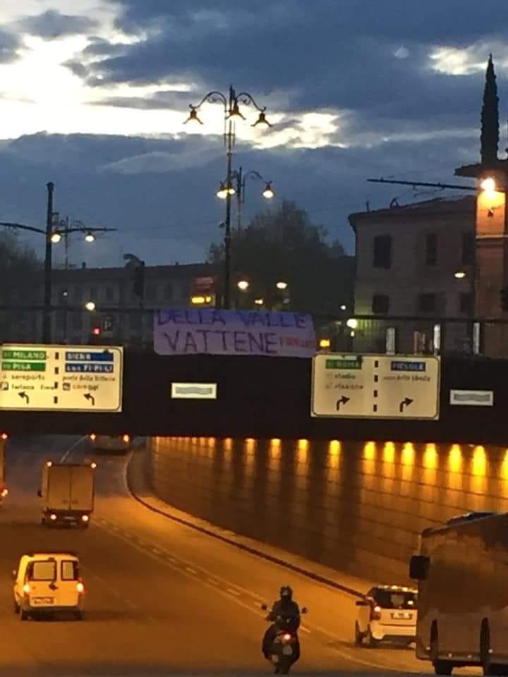 Hanno aggiunto altra carne al fuoco alla protesta in atto contro la società Fiorentina gli striscioni apparsi quest'oggi in tutto il territorio della città metropolitana di Firenze recanti la scritta: "Della Valle vattene" e firmati a nome di Firenze. Le scritte sono state trovate un po' dappertutto nel capoluogo toscano, e questa volta si sono spinte anche ai confini della città metropolitana: dalla Fortezza da Basso a Piazzale Michelangelo, da Casellina a via Aretina, passando per Ponte Santa Trinita, il Gignoro e Ponte a Greve. Sono solo alcuni dei luoghi di una protesta che questa volta è stata davvero "a tappeto". Ecco alcune foto raccolte dalla nostra redazione