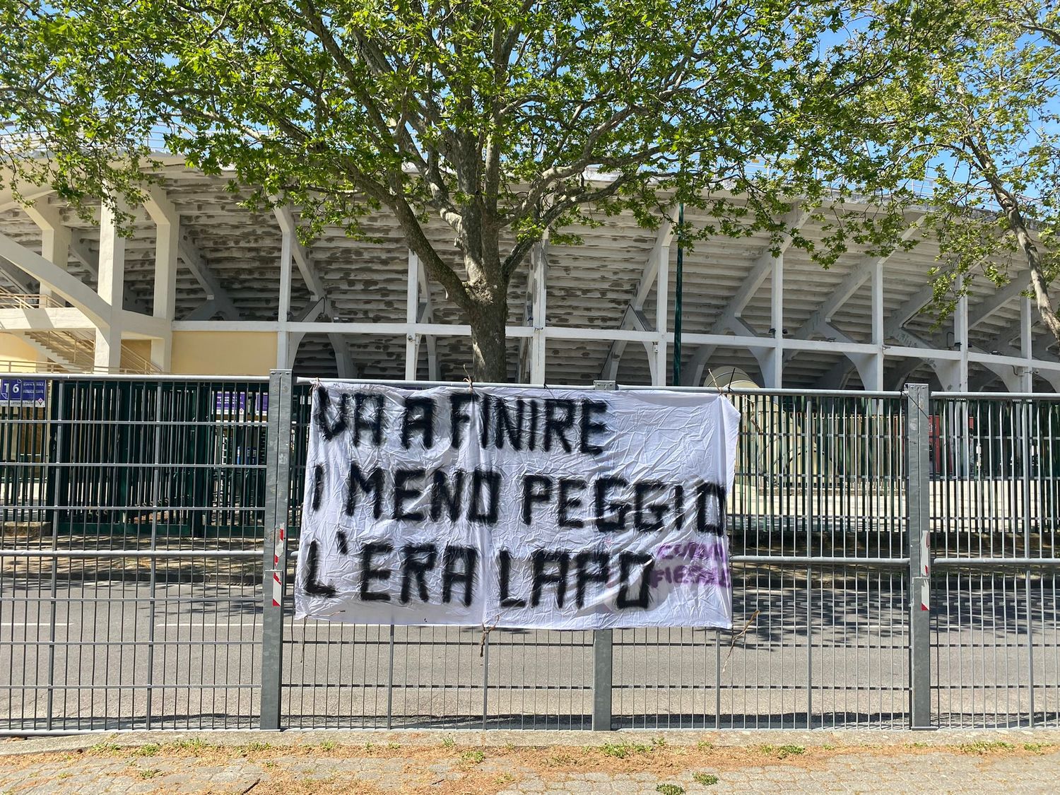 Dopo la presenza al centro sportivo ieri pomeriggio, i tifosi della Fiorentina si sono fatti sentire in vista della partita di oggi contro la Juventus anche con tanti striscioni apparsi in ogni parte della città, da Ponte a Greve a Ponte alle Grazie a Firenze. La maggior parte indirizzati ad Andrea Agnelli e alla Superlega, progetto annunciato e poi sbiadito in settimana. Uno di questi, come mostra la foto, recita con il noto sarcasmo toscano: "Va a finire il meno peggio era Lapo", firmato Curva Fiesole.