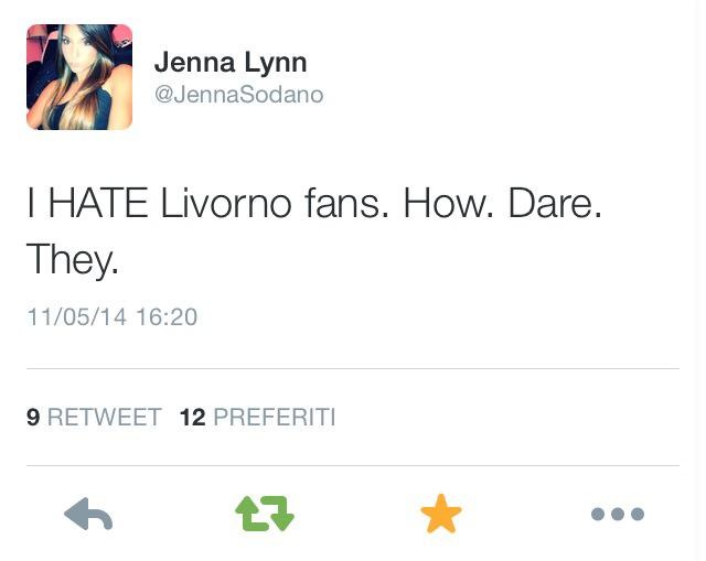 TWITTER, Ragazza Rossi: "Odio i tifosi del Livorno"