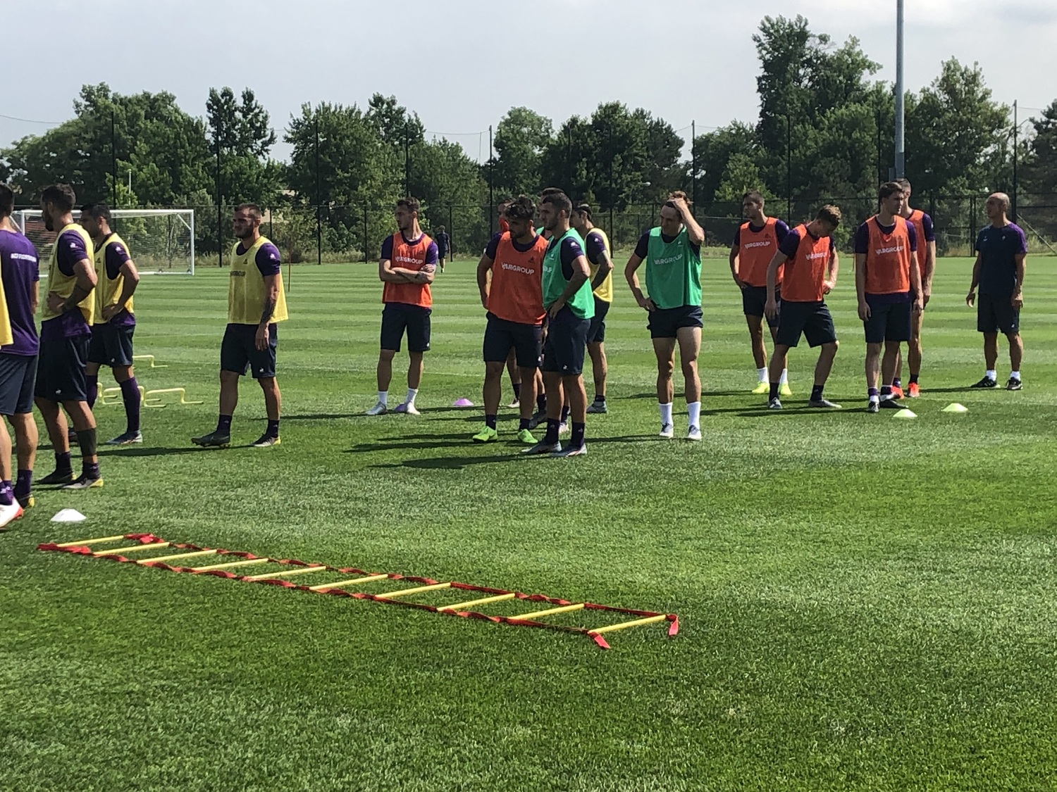 16:05 - Squadra in campo per il primo e unico allenamento di giornata. Per il gruppo viola esercizi iniziali di riscaldamento, da ieri è rientrato in gruppo anche Federico Chiesa.