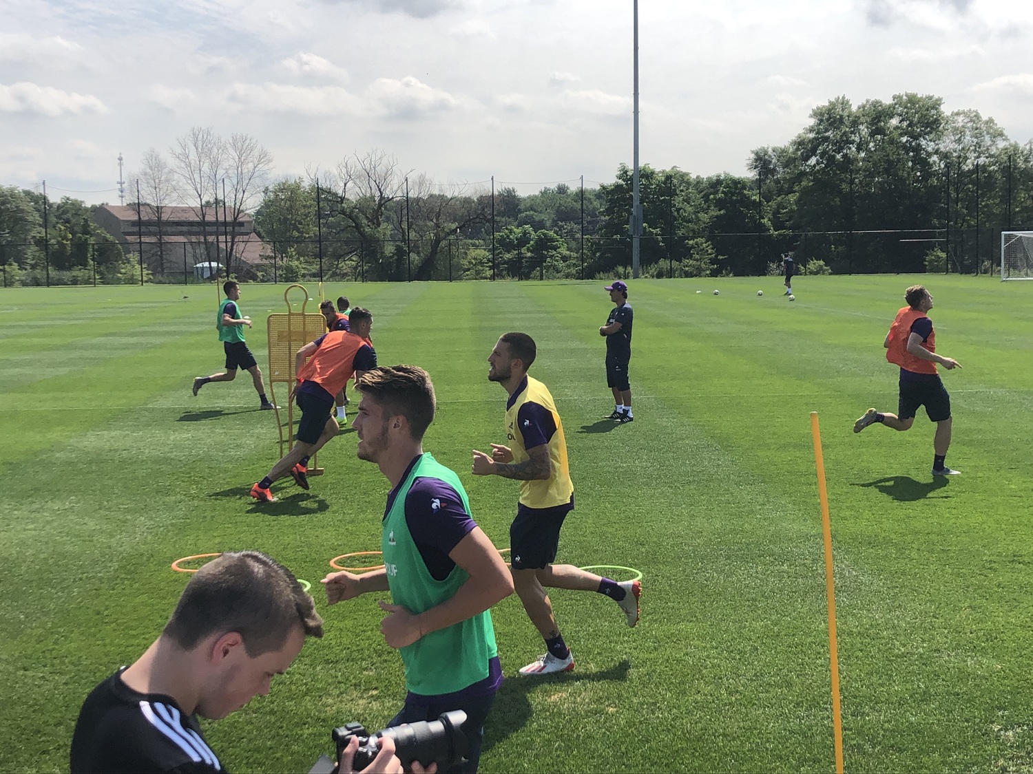16:40 - Allenamento che si fa più intenso visto il caldo e il percorso che i giocatori vengono chiamati a sostenere sotto lo sguardo del preparatore atletico e del tecnico Montella. L'esercizio viene eseguito a più riprese e a coppie nelle quali il primo deve attendere il secondo per passare al successivo ostacolo.