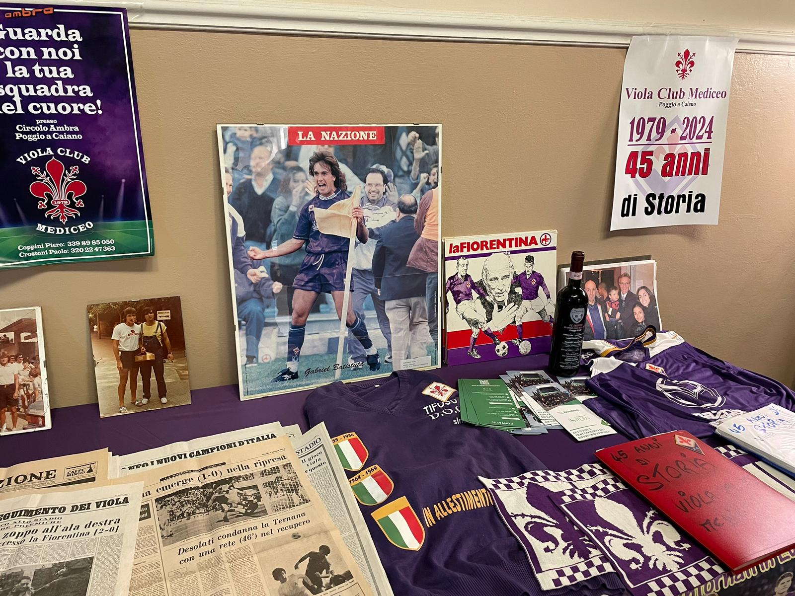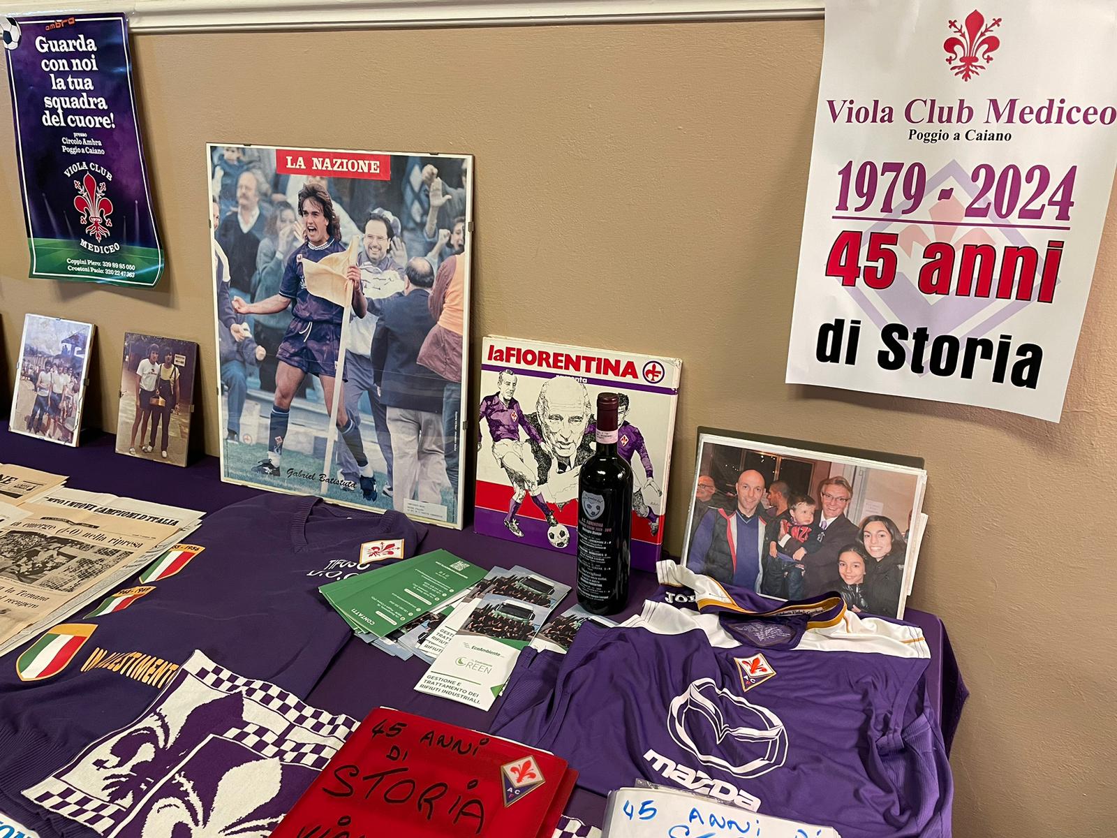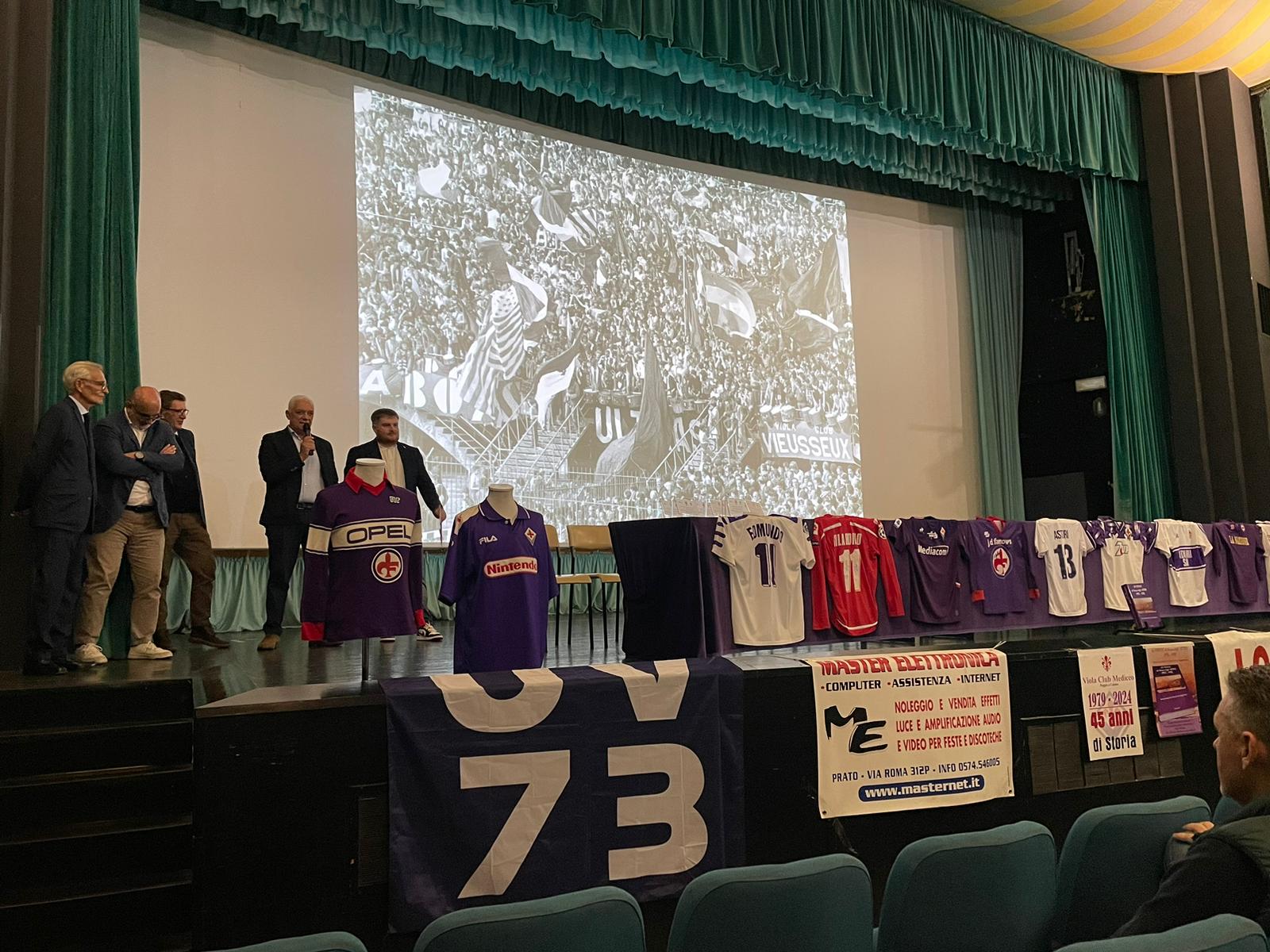 Splendida serata ieri presso il teatro Ambra di Poggio a Caiano, dove lo storico Viola Club “Mediceo” ha festeggiato i suoi 45 anni dalla fondazione alla presenza di oltre cento tifosi, ex viola e giornalisti fiorentini. L’evento - coordinato dal presidente Piero Coppini - ha visto la presenza di Roberto Galbiati e gli interventi telefonici di Walter Speggiorin e Papa Waigo, ma anche di note firme della stampa locale come Stefano Cecchi, Mario Tenerani, Leonardo Petri, Rocío Rodriguez e il nostro Andrea Giannattasio, che al pari degli altri ospiti ha ricevuto una targa celebrativa della serata. All’evento hanno partecipato anche tre storici tifosi della Fiorentina, tra i protagonisti del mitico gruppo UV73 che ha di recente festeggiato i 51 anni dalla fondazione (Piero Papini, Marzio Brazzini e Michelangelo Comanducci), che hanno raccontato la nascita del movimento ultras a Firenze. Ecco alcune delle immagini della festa andata in scena ieri.