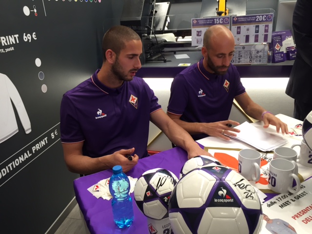 Al Fiorentina Store Duomo Borja Valero e Luca Lezzerini, in veste di testimonial per l'inizio della vendita delle nuove maglie in edizione limitata fino al 1° luglio, sono rimasti a disposizione dei tifosi per firmare autografi e fare foto. Ecco le immagini e il video di Firenzeviola.it.