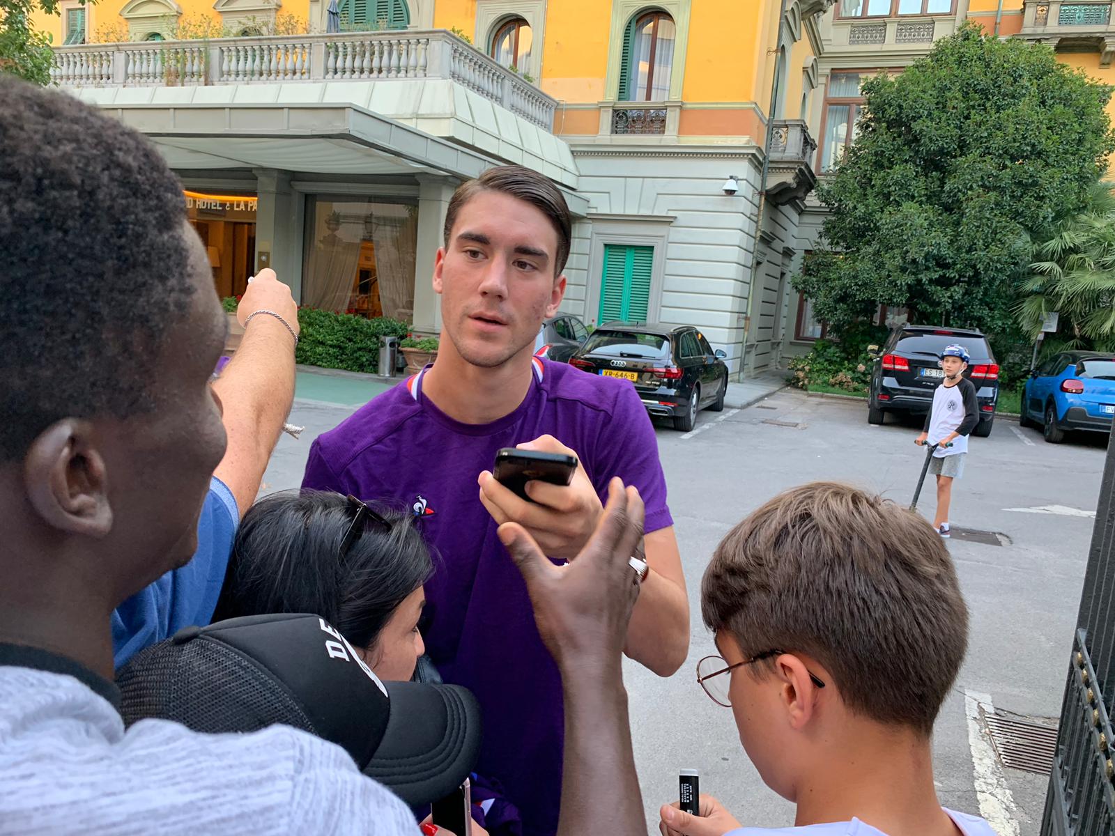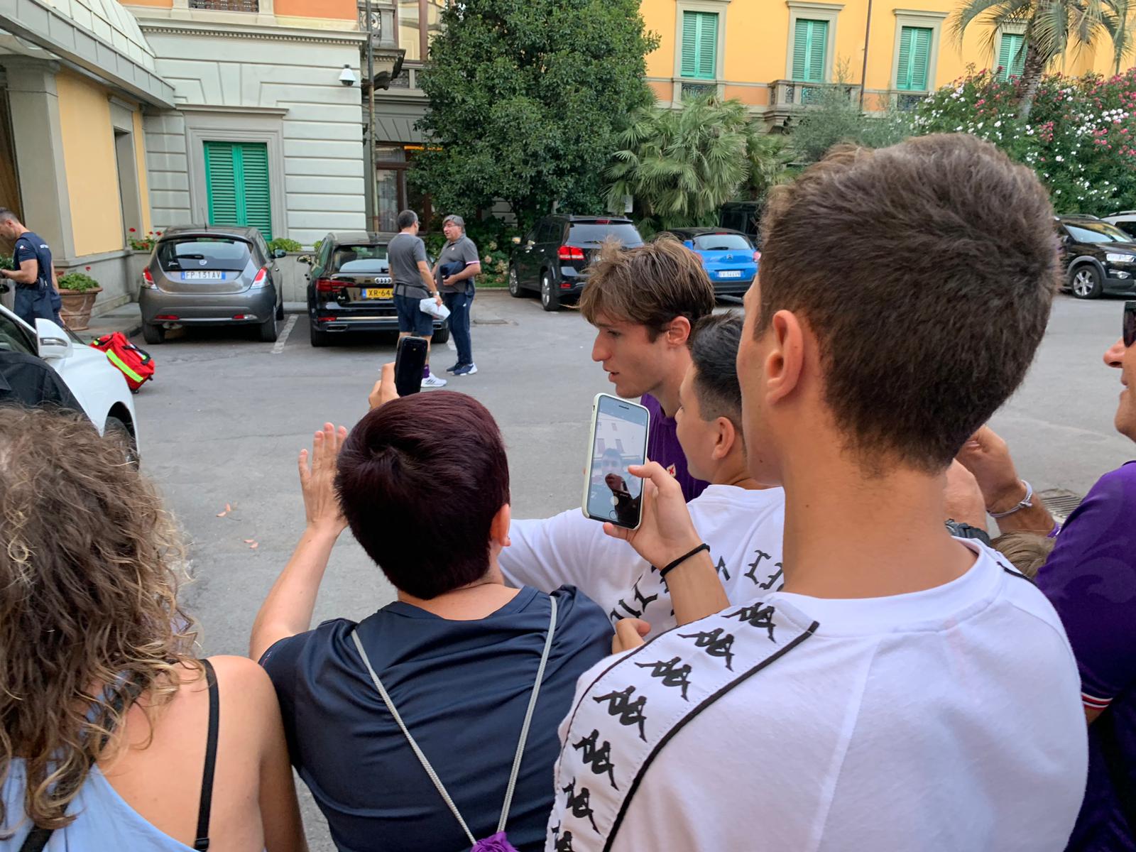 La Fiorentina, terminato l'allenamento pomeridiano allo stadio "Mariotti" di Montecatini, è rientrata in albergo. I tifosi approfittano come sempre per strappare selfie ai loro beniamini, con Chiesa e Vlahovic in testa. Ecco le immagini di Firenzeviola.it