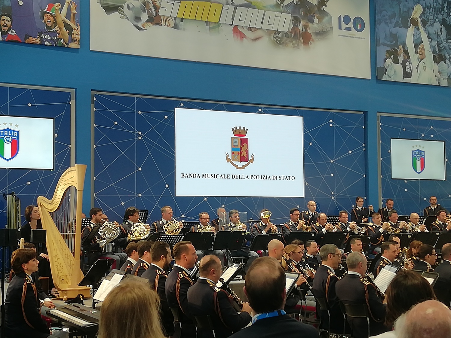 La giornata della Nazionale a Coverciano è iniziata con l'inno nazionale suonato dalla banda musicale della Polizia di stato (direttore Maurizio Billi, tenore Francesco Grallo) e raccontato dal prof Michele D'Andrea, che ha spiegato i versi nel loro significato, con un concerto all'interno dell'auditorium. Presente tutto il gruppo azzurro capitanato dal ct Mancini (compresi i due viola Cristiano Biraghi e Federico Chiesa), il "padrone di casa" Demetrio Albertini e Francesco Tagliente che presiede l'Ancri (associazione nazionale insigniti dell'ordine di merito della Repubblica Italiana) che ha condiviso l'iniziativa con la Federcalcio e la stessa Polizia. Prima dell'inno, emozionanti anche gli omaggi della banda a Ennio Morricone, Puccini e Gioacchino Rossini. Alla fine tutto in piedi per l'applauso: "Siete una grande squadra, l'inno ci dà sempre una grande carica prima di ogni partita" hanno detto in coro i due veterani Bonucci e Chiellini alla banda mentre il ct ha ringraziato per l'inno "che per noi non è mai stata una marcetta ma l'inno più bello del mondo".