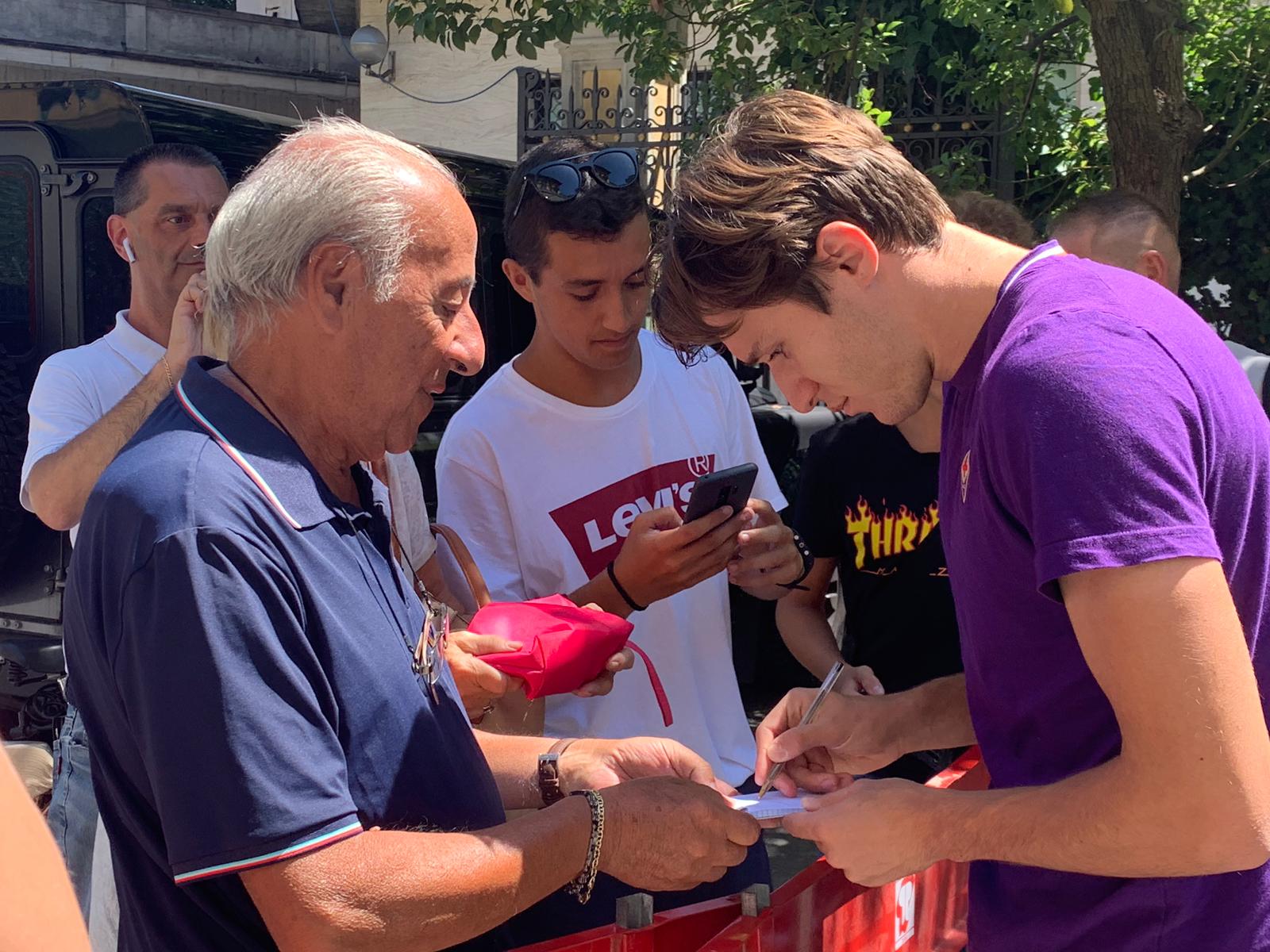 C'è anche Federico Chiesa fuori dall'hotel che ospita la Fiorentina a Montecatini. Il classe '97, al centro di numerosi voci di mercato con molti club interessati (Juventus in primis), si è dedicato alle foto di rito con i tifosi ed è apparso sereno in volto come testimoniano il video e le foto di seguito di FirenzeViola.it.
