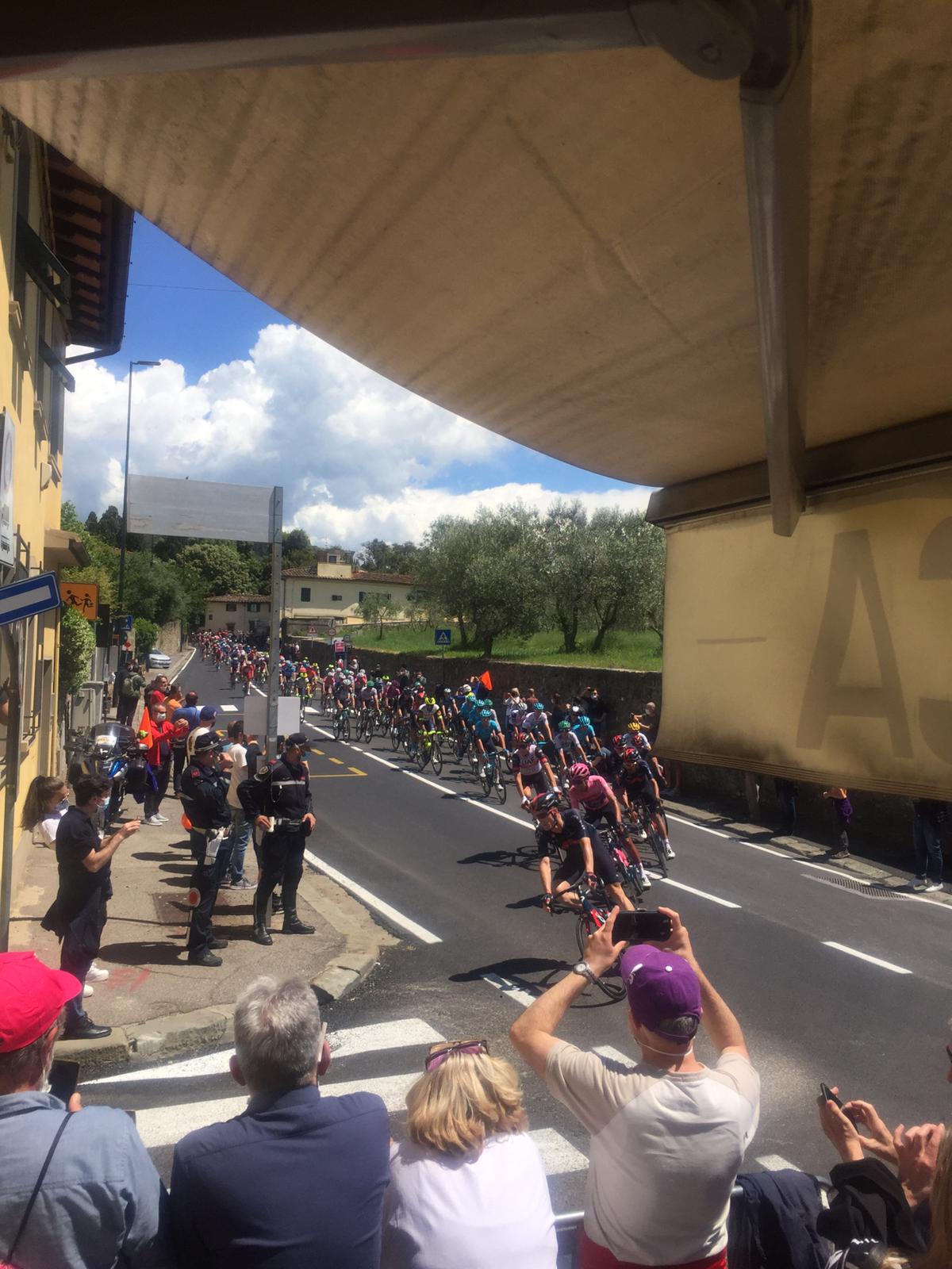 Il Giro d'Italia è sempre una grande emozione. Ed oggi la carovana rosa è passata per le strade di Firenze, nel tragitto tra Siena e Bagno di Romagna. Intorno all'ora di pranzo il gruppo ha toccato le zone di Gino Bartali per poi dirigersi verso Sesto per l'omaggio ad Afredo Martini, i due campioni toscani che hanno fatto la storia del ciclismo italiano. Ecco alcune immagini di Firenzeviola, mentre tra una cornice di pubblico accorso ad appplaudire il Giro, i ciclisti hanno attraversato via Bolognese imboccando la via che porta a Careggi. Purtroppo proprio a Careggi, ma all'ospedale omonimo,è dovuto entrare da paziente Alessandro De Marchi, due giorni in maglia rosa in quest'edizione del Giro d' Italia, per una brutta caduta dopo i primi chilometri della tappa: frattura della clavicola e di 4 costole e contusione polmonare le conseguenze.