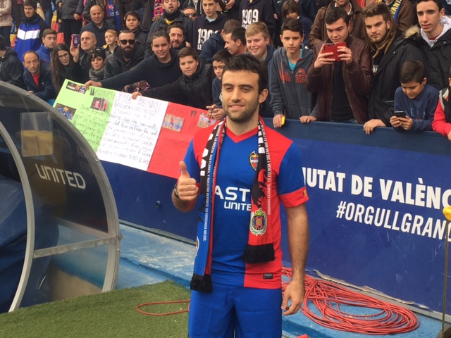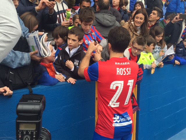 È avvenuta al cospetto di oltre 500 tifosi la presentazione di Giuseppe Rossi come nuovo giocatore del Levante: una grande cornice di pubblico ha accolto Pepito al suo ingresso sul terreno di gioco, con l'ex viola che si è a lungo intrattenuto a bordo campo per firmare autografi e scattare le prime foto da nuovo giocatore "granota". Domani Rossi potrebbe fare l'esordio fin dal 1' con la sua nuova maglia nella delicatissima sfida in campionato contro il Las Palmas.