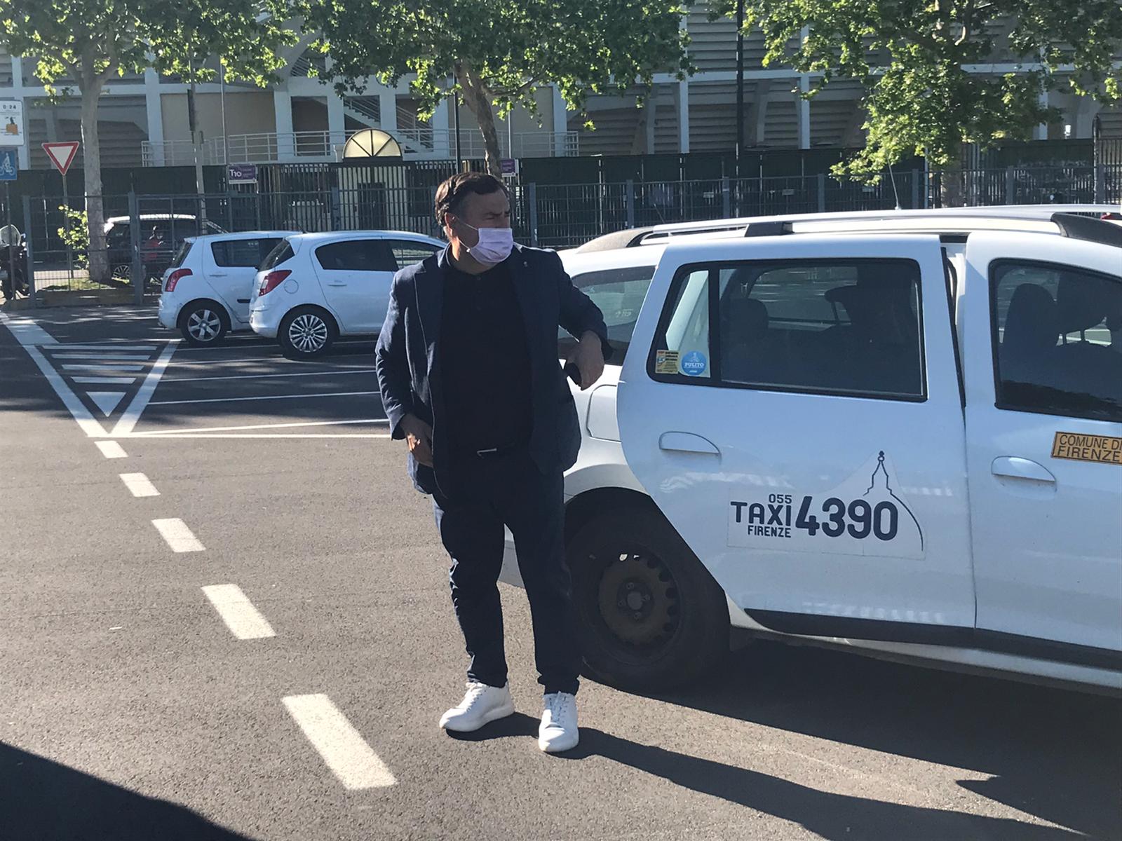 Ore 17.40: li ha raggiunti anche Joe Barone. Eccolo nella foto di Firenzeviola mentre entra al centro sportivo, rigorosamente con la mascherina.