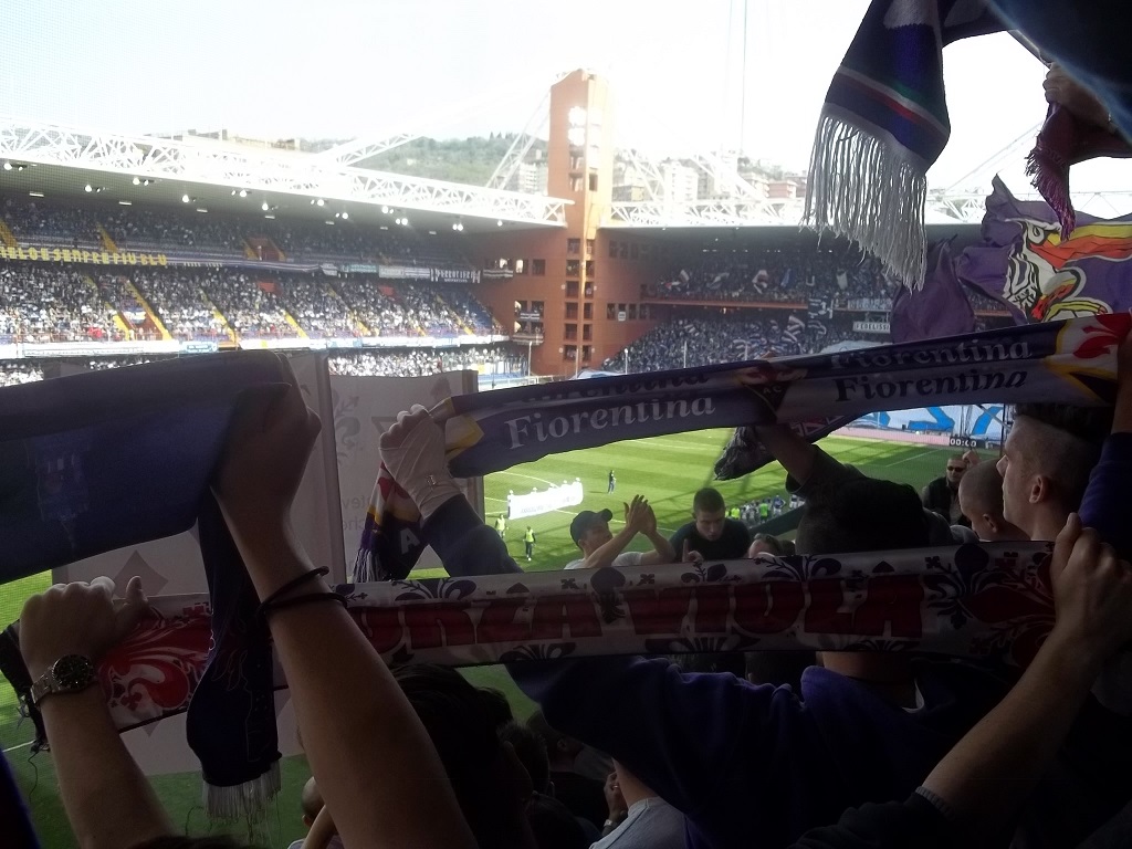 Dopo l'ennesima delusione vissuta pochi giorni prima al Franchi contro il Milan, la gara della nostra rivincita morale, attesa per quasi un anno, la tifoseria non può far altro che "leccarsi le ferite" e continuare a dare il proprio supporto e sostegno alla squadra gigliata. La maggior parte ormai proiettata verso la finale di Coppa Italia (vero e reale obiettivo della stagione), rinuncia ad una gara che ha poche prospettive, ma i soliti irriducibili, si mettono in movimento verso il Ferraris di Genova. Dopo tante gare in notturna, con orari improponibili per il rientro ed immani sacrifici per il giorno successivo, finalmente il fischio d'inizio è per le 15.00, così da partire verso metà mattina, preludio della primavera. La distanza è irrisoria e senza particolari difficoltà, i 531 tifosi presenti, suddivisi tra i sette pullman e due pulmini, coadiuvati anche da mezzi propri, si posizionano già prima del riscaldamento delle squadre, nella parte superiore del settore ospiti.