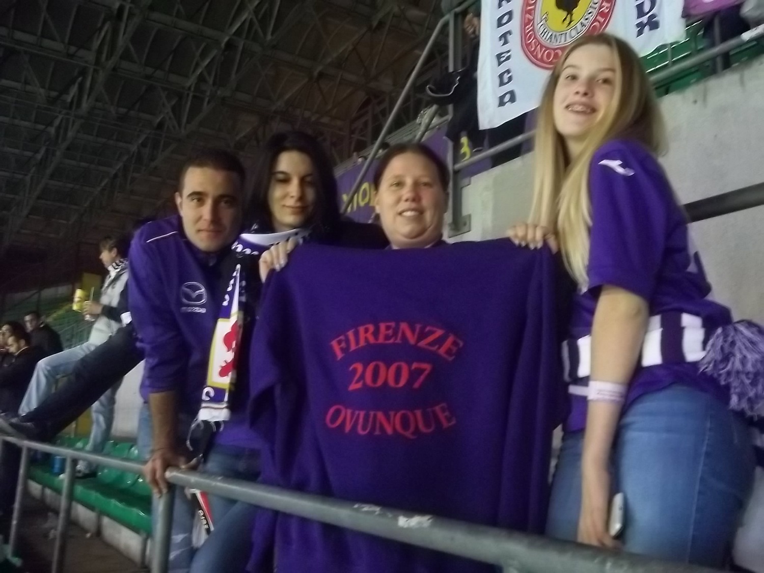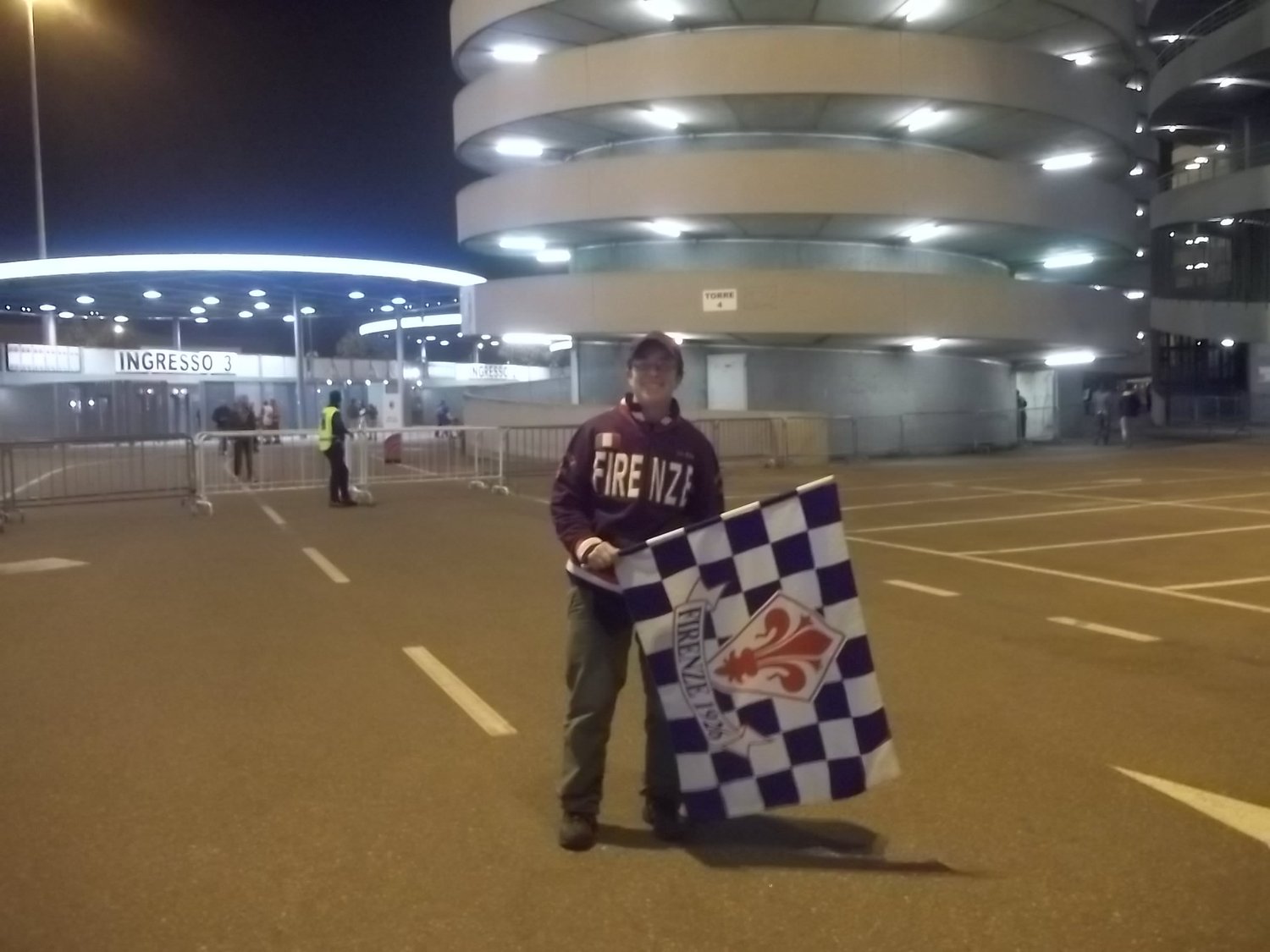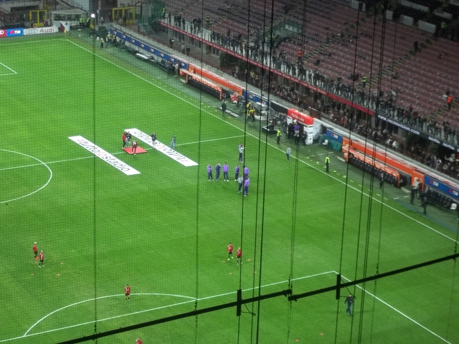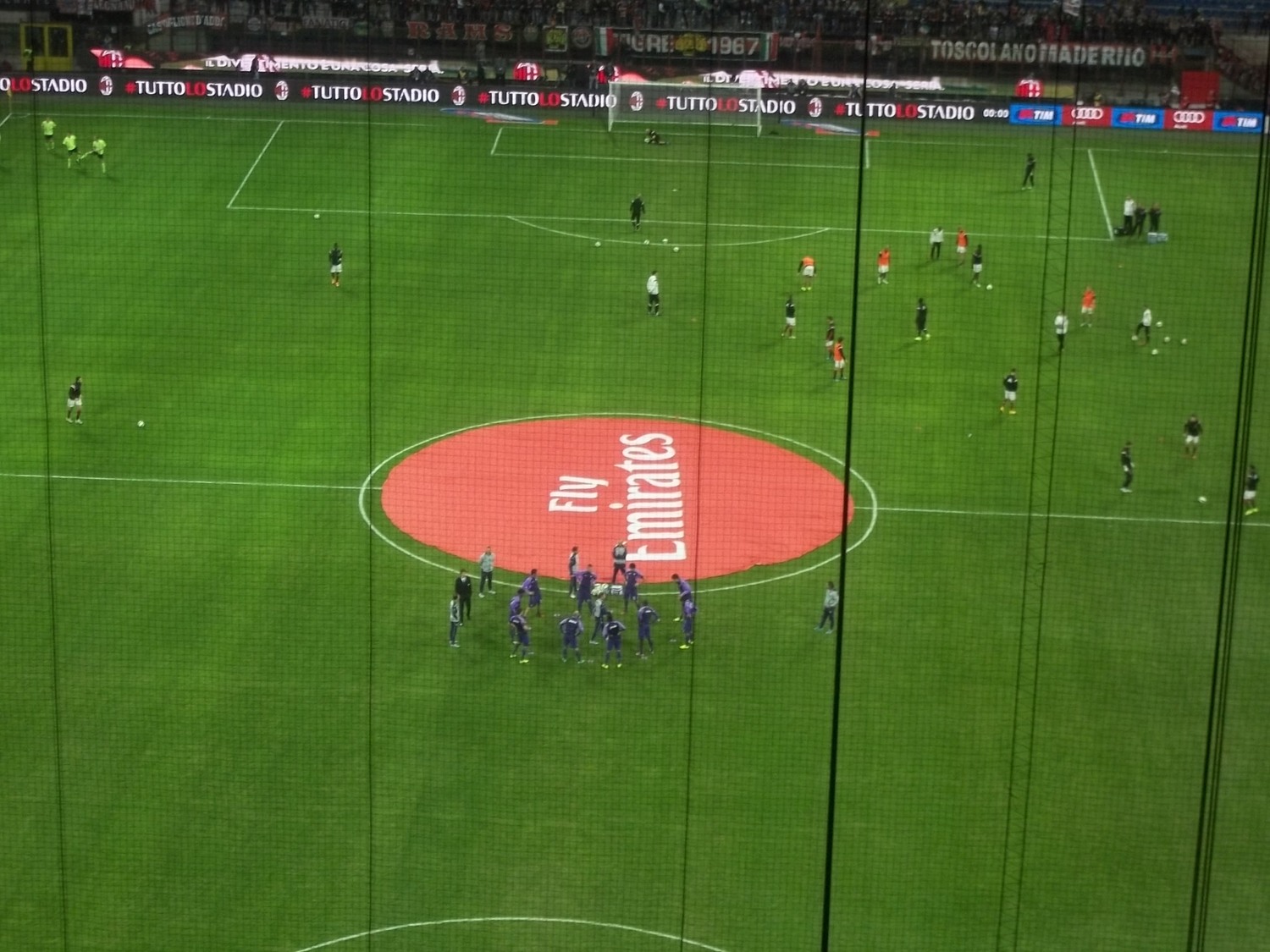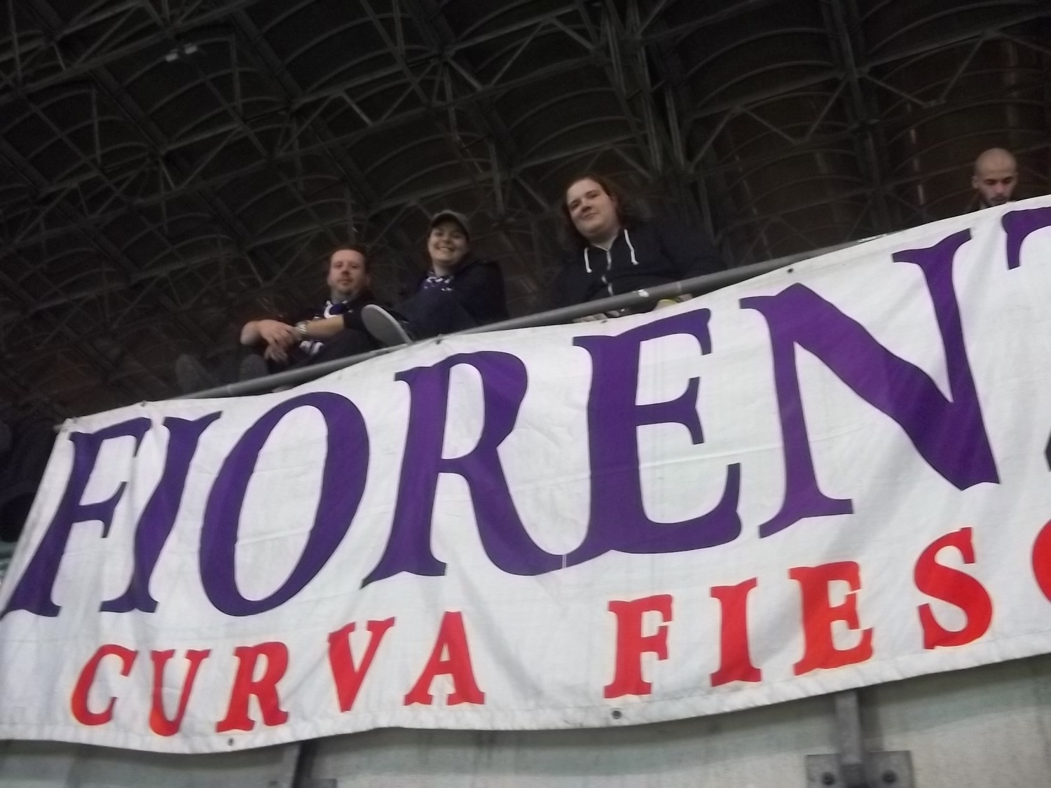 Da Firenze sono stati organizzati solo due pullman, piccoli gruppi in diversi pulmini, e la maggior parte con mezzi propri tali da recuperare qualche ora per il rientro. Arrivare al terzo anello è come scalare una montagna, si arriva in cima quasi in apnea, e lo spettacolo è desolante: sembra di vedere i giocatori nel gioco del subbuteo. Forse ancora colpiti dallo straordinario tifo dei tifosi greci, il tifo parte incessante e continuo dai primi minuti, l'ennesimo sacrificio fatto per seguire la squadra deve servire a dare quella spinta e carica in più per la Fiorentina. Il Meazza non è al completo, molti sono gli spazi vuoti, da una parte e dall'altra delle curve le solite scaramucce verbali. All'entrata in campo la formazione viola è scontata, un 4-3-1-2, Mati Fernandez dietro Babacar e Cuadrado.