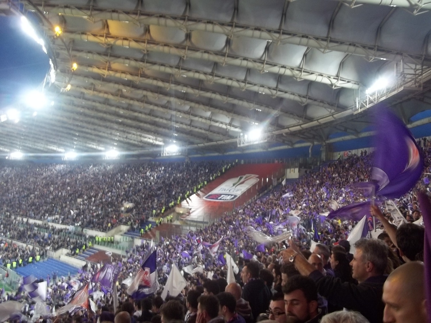 L'aria che si respira è fantastica già alla partenza, una trasferta che diventa un vero e proprio esodo verso la capitale, qualcosa di incredibile che non si viveva da decenni. Per l'intero percorso, l'autostrada diventa un serpentone di mezzi colorati di viola, le soste nei vari autogrill sono uno spettacolo a vedersi. Migliaia di tifosi di ogni età diventano una marea di cuori pulsanti all'unisono, poco importa se tanti ci sono per la prima volta, o volti dei soliti, la passione che li accomuna prevale su tutto. La tensione si legge negli occhi di ognuno, l'ansia di arrivare per tempo all'incontro l'unica vera preoccupazione. Con la solita pazienza si seguono le direttive dettate dalle organizzazioni già all'uscita dell'autostrada, con i consueti controlli delle forze dell'ordine, prima di essere convogliati in gruppi di 15 pullman verso lo stadio.