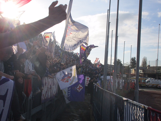 Dopo il deludente pareggio al Franchi contro la Sampdoria e la sosta per gli impegni delle Nazionali, finalmente si torna al calcio giocato. La Fiorentina è di scena al Castellani di Empoli, una sfida che i tifosi viola non considerano ne' trasferta ne' derby. A differenza degli ultimi anni, la tifoseria (anche per la promozione voluta dalla società per la Curva Sud) si mobilita fin dai primi giorni della vendita dei tagliandi. Il numero totale sugli spalti del settore ospiti è considerevole, 2242 in totale, qualche centinaio nella tribuna adiacente, circa tremila in tutto. La maggior parte decide di spostarsi con mezzi propri, in quattrocento arrivano al Castellani in treno. L' effetto ottico del settore è straordinario già all'apertura dei cancelli, nessun problema per i controlli di routine. All'ingresso della squadra sul terreno di gioco, i primi incessanti cori ad iniziare dal portiere Tatarusanu, a tutta la squadra che deve riscattare la brutta sconfitta della passata stagione. La formazione è scontata, il modulo del 4-2-3-1, gli undici di partenza sono Tatarusanu, Tomovic, Gonzalo, Astori, Milic, Badelj, Borja Valero, Tello, Bernardeschi, Ilicic, Kalinic. Nella prima frazione di gioco la squadra viola attacca dalla parte opposta al settore ospiti, ma sono i padroni di casa che si portano verso l' area avversaria con le prime incursioni di Maccarone. La temperatura è anomala per il periodo, un caldo afoso, ma sono le ripartenze degli empolesi che portano a brividi e momenti di apprensione. Dal ventesimo i viola si portano in avanti, la visuale dagli spalti è pessima, ma un Tello ritrovato costringe il portiere Skorupski a deviare in angolo. Poi il vantaggio con Bernardeschi, l'azione rocambolesca con il fallo su Kalinic in area non si riesce a vedere, ma l'arbitro che indica il centrocampo dà la certezza del goal realizzato, la gioia esplode in tutto il settore. La gara entra nel vivo, dal possibile raddoppio dei gigliati alla punizione dal limite per fallo di Tomovic su Maccarone, con le accese proteste dei padroni di casa in pochi minuti. Scampato pericolo, la prima frazione di gioco termina con il vantaggio dei viola. Nel secondo tempo le azioni di attacco della squadra viola sono ben visibili dal settore ospiti, netto il fallo di Dioussè su Badelj con il conseguente rigore. Si porta sul dischetto Ilicic che finalmente realizza il primo goal della stagione dopo le buone prestazioni delle gare precedenti. La Fiorentina padrona del campo sfiora anche il terzo goal in più occasioni. Ma è l'euro goal di Bernardeschi del tre a zero che porta al delirio totale e vale da solo il costo del biglietto. Il numero dieci viola festeggia sotto la curva con i tifosi. Pochi minuti e un altro capolavoro impreziosisce un risultato che all'inizio nessuno osava immaginare, doppietta anche per lo sloveno Ilicic che finalmente diventa determinante. La gara dagli spalti sembra finire con il quarto goal, i tifosi si portano sulle transenne che li separano dal campo, partono i cori per Antognoni presente in tribuna. Alle sostituzioni di Ilcicic, Tomovic e Bernardeschi per Salcedo, Vecino e Cristoforo, quasi non si seguono le azioni in campo. Spontaneo il coro per Bernardeschi :"il ragazzo gioca bene" e l'ironia di sempre verso gli avversari "il pallone è quello giallo". Il possibile goal della bandiera di Maccarone è deviato in corner da Tatarusanu, con la difesa gigliata che resta una delle migliori del campionato. Il triplice fischio finale senza recupero può fare sfogo all'euforia per la terza vittoria consecutiva, con la squadra che si porta sotto il settore in un unico abbraccio. La soddisfazione e l'entusiasmo accompagnano il popolo viola all'uscita, e mettono da parte almeno in questa gara le amarezze e le delusioni dei risultati al Franchi. La squadra ha mostrato carattere e concretezza, ma soprattutto margini di miglioramento anche nei singoli. Bernardeschi e Ilicic i protagonisti assoluti della gara, ma fondamentali anche le parate di Tatarusanu e il lavoro svolto a centrocampo da Badelj e Borja Valero, con la buona prestazione di Tello. Per il popolo viola non resta che sperare che questo risultato roboante possa diventare una svolta positiva per i prossimi impegni nel tour de force fino a Natale. La presenza, la carica, il cuore pulsante all'unisono dei tremila, ancora una volta, sottolineano l' immenso e totale orgoglio verso i colori viola.