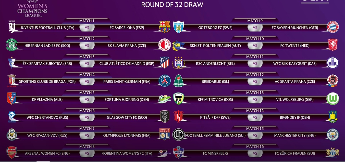 13.53 - Si conclude dunque l'estrazione di tutti i sedicesimi di finale della Women Champions League. Nell'immagine in fondo all'articolo tutti gli accoppiamenti