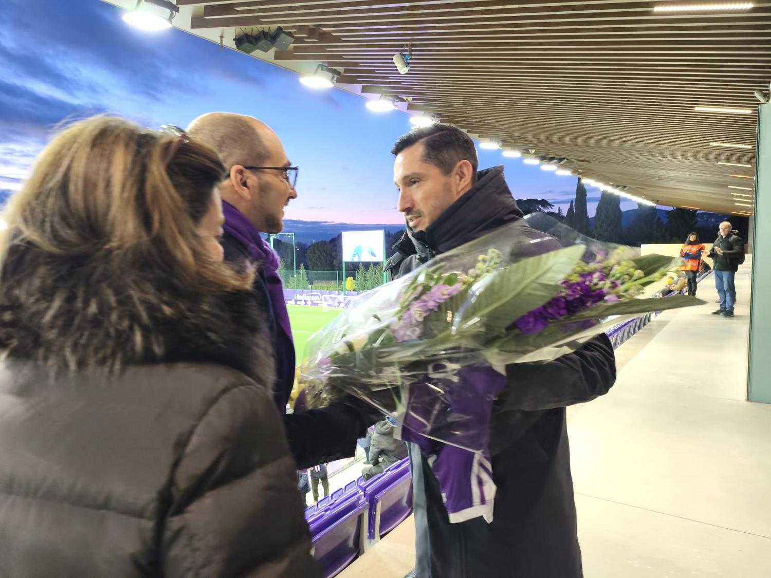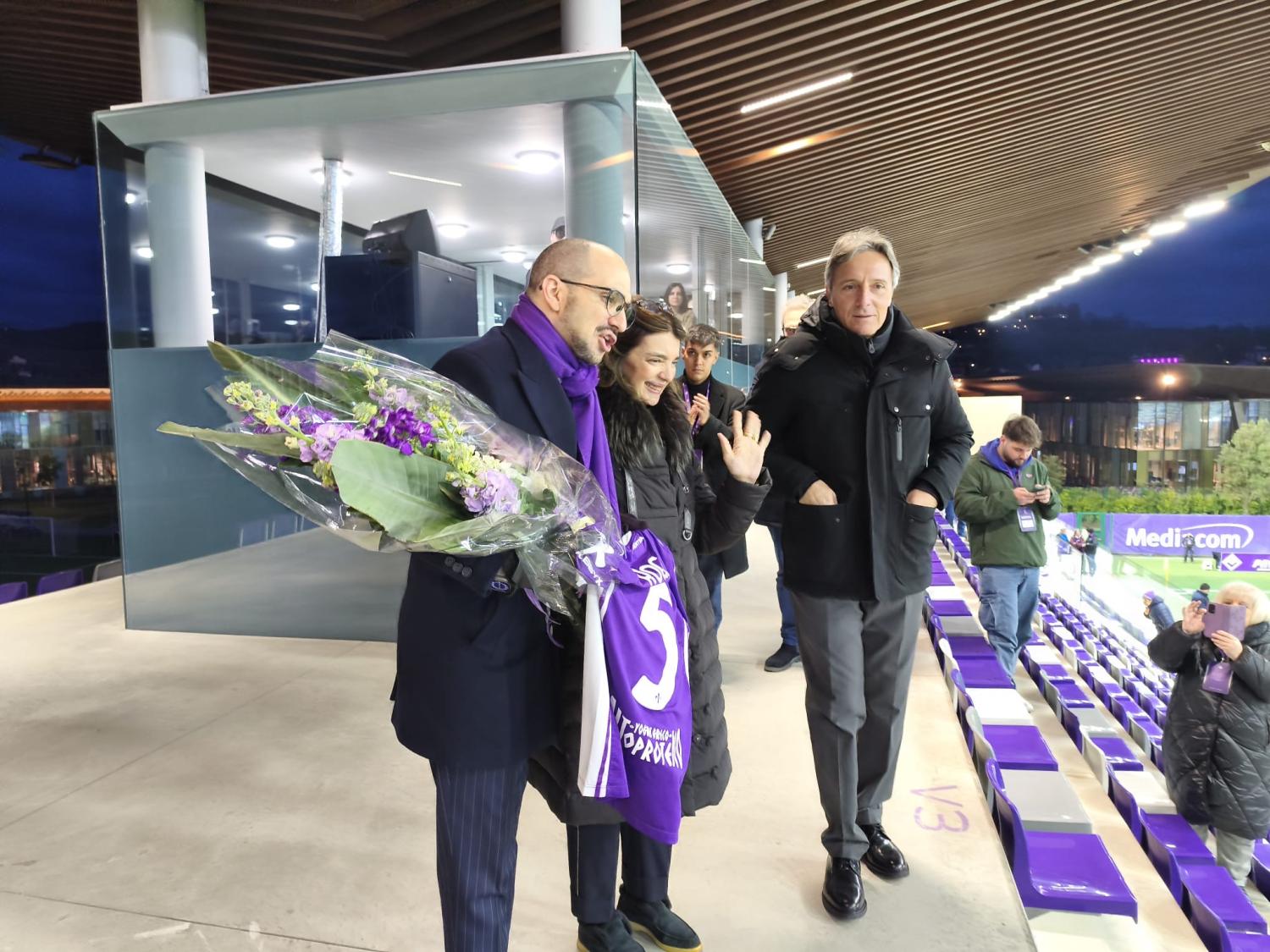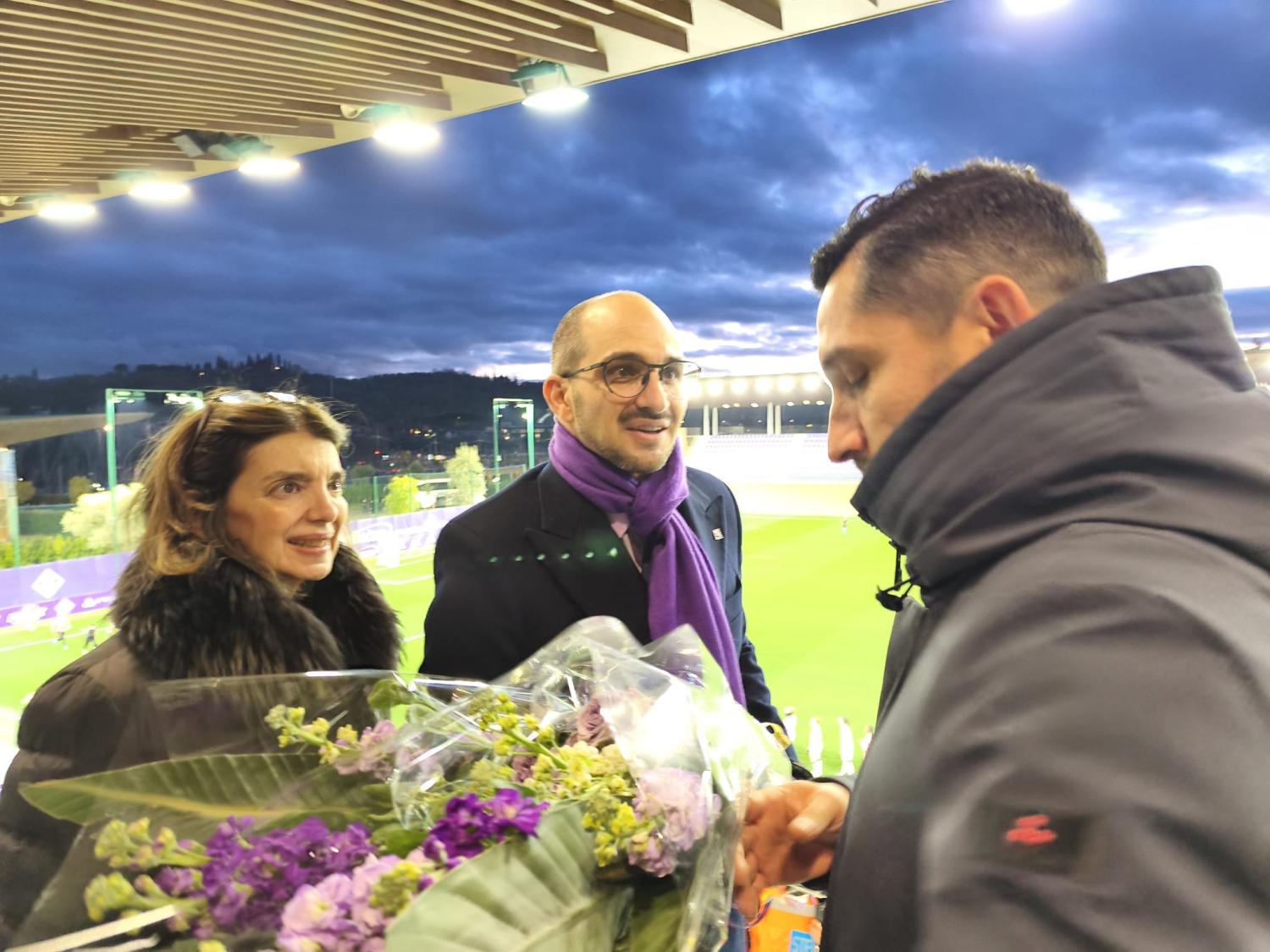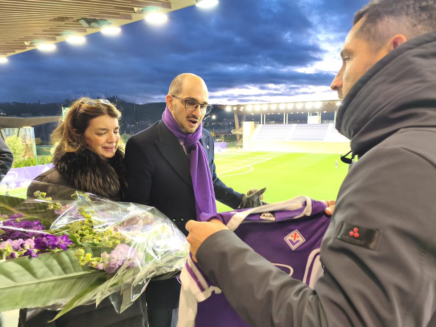 Prima del fischio d'inizio di Fiorentina Femminile-Milan, gara valida per il ritorno dei quarti di finale di Coppa Italia Femminile, l'allenatore della squadra viola, Pablo Pinones Arce, ha consegnato un mazzo di fiori e la maglia numero 5 di Rocco Commisso alla famiglia del presidente scomparso nella notta tra il 16 e il 17 gennaio scorso. La moglie Catherine e il figlio Giuseppe sono infatti presenti sulla tribuna dello stadio Curva Fiesole al Viola Park per seguire l'importante partita di Coppa, così come amava sempre fare il presidente viola che non si perdeva mai le gare delle viola e non mancava mai di andare al padiglione a trovarle quando era a Firenze.