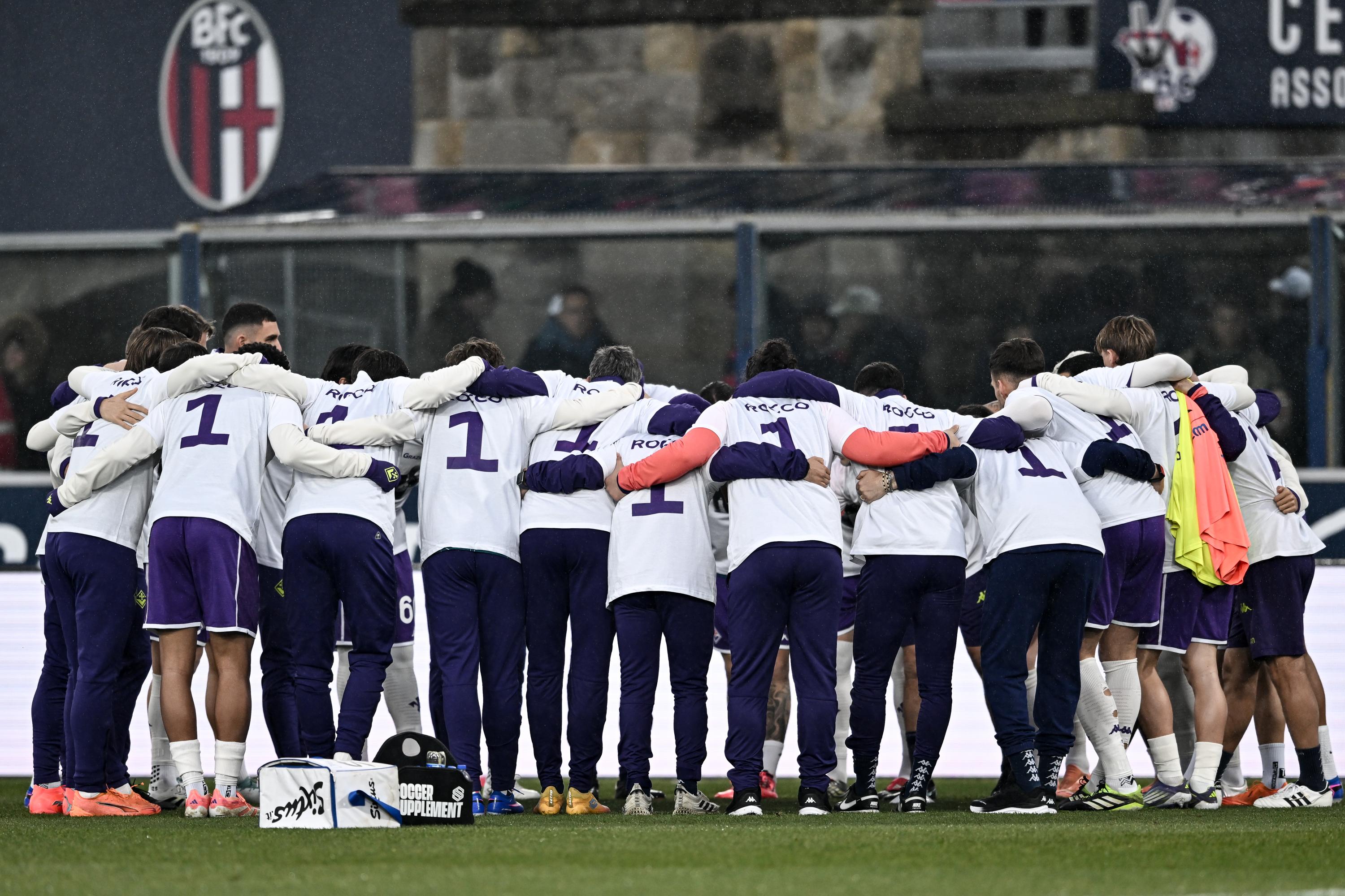 La Fiorentina aveva annunciato ieri che, in ricordo e in memoria di Rocco Commisso, non solo avrebbe deciso di giocare la gara di oggi contro il Bologna, ma avrebbe indossato per il riscaldamento una maglia celebrativa in suo onore. E così è stato, con tutta la squadra di Vanoli che è scesa in campo al Dall'Ara nel pre partita con una t-shirt bianca, con davanti una foto del patron che palleggia e con su scritto: "Grazie Rocco". Ecco l'immagine direttamente dal campo: