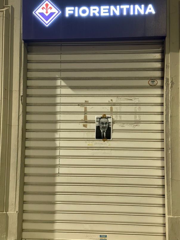 Anche per questo stanotte, in tre luoghi distinti del quartiere di Campo di Marte, sono apparse alcune foto con il volto in primo piano (e inconfondibile) dell'ex tecnico di Napoli, Juventus e Lazio attaccate in tre luoghi significativi. I luoghi prescelti sono stati la biglietteria in via dei Sette Santi, i cancelli dietro la Curva Fiesole e le cancellate della tribuna autorità. Ecco le immagini di Firenzeviola.it.