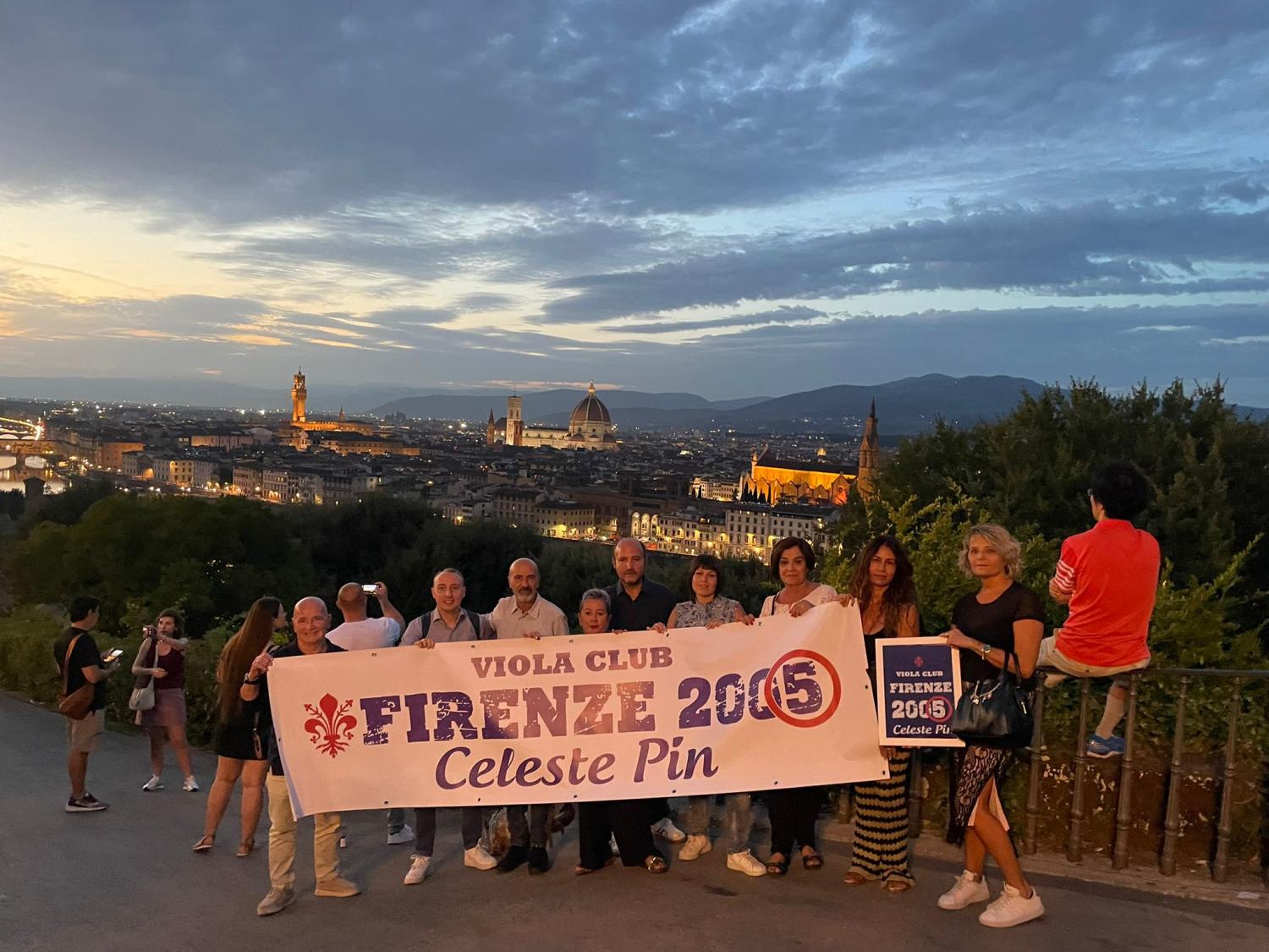 Questa sera, presso il Piazzale Michelangelo di Firenze, il Viola Club Firenze 2005 ha svelato quello che sarà il suo nuovo striscione ma soprattutto il suo nome, Viola Club Firenze 2005 Celeste Pin, un cambio di nominativo in memoria della bandiera della Fiorentina scomparsa tragicamente lo scorso 22 luglio. Pin era il presidente onorario del Viola Club e per ufficializzare il nuovo nome si è svolta una cerimonia con la presenza della presidentessa Milena Poggesi e del vice-presidente Alessio Serra, nonché della vedova di Celeste Pin, Gloria, e di sua figlia. Queste le immagini di FirenzeViola.it: