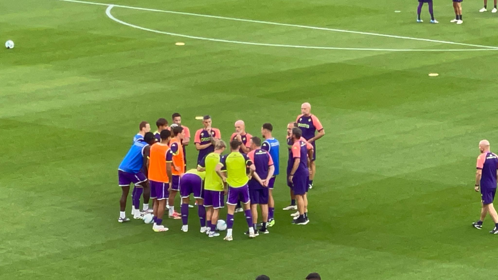 In attesa della sfida Fiorentina-Japan University FA (fischio d'inizio alle 20) Stefano Pioli, durante il riscaldamento, ha tenuto a rapporto la squadra. Ecco le immagini di Firenzeviola.it con il tecnico che ha raggruppato i giocatori intorno a sé.