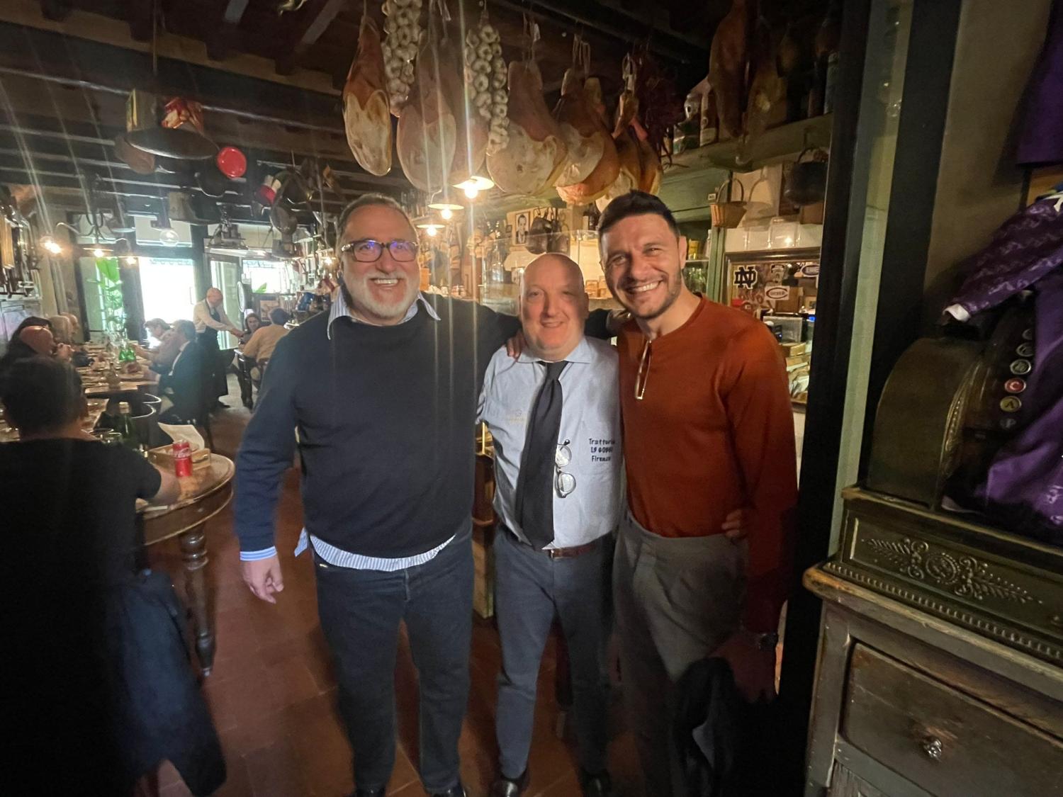 Continua il tour culinario di Joaquin Sanchez a Firenze. Dopo la bistecca che si è gustato ieri, l'ex viola è andato a trovare gli amici Enrico e Lucio della trattoria “I Tredici Gobbi”, noto ristorante nel centro di Firenze. Presenti al pranzo di oggi anche Marc Roca e Diego Llorente, calciatori del Real Betis infortunati e quindi indisponibili per la gara di stasera, che hanno scelto di gustarsi dei piatti tipici toscani in occasione della trasferta italiana. Ecco le foto di Joaquin, attualmente brand ambassador del Betis, assieme ai due giocatori biancoverdi e ai responsabili del ristorante.
