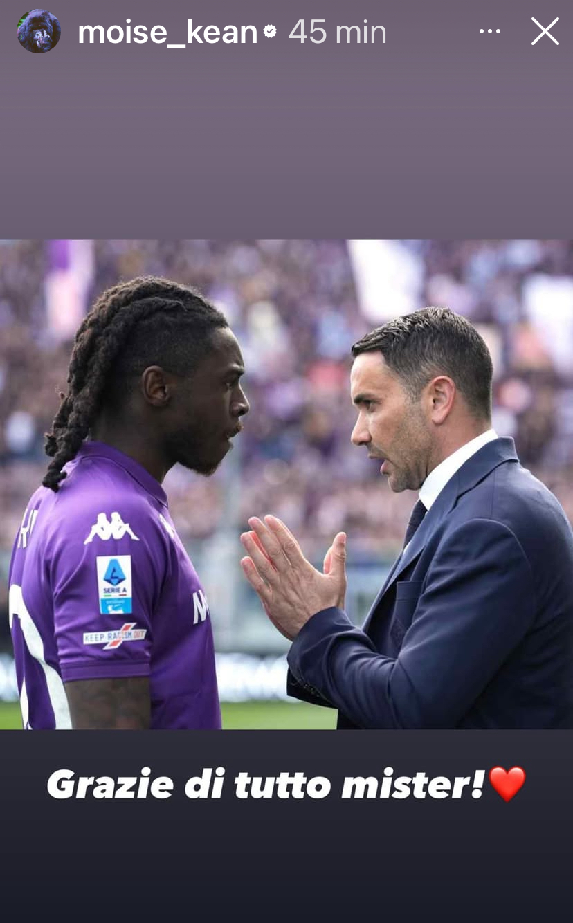 Kean e i giocatori viola salutano Palladino: "Grazie di tutto Mister!"