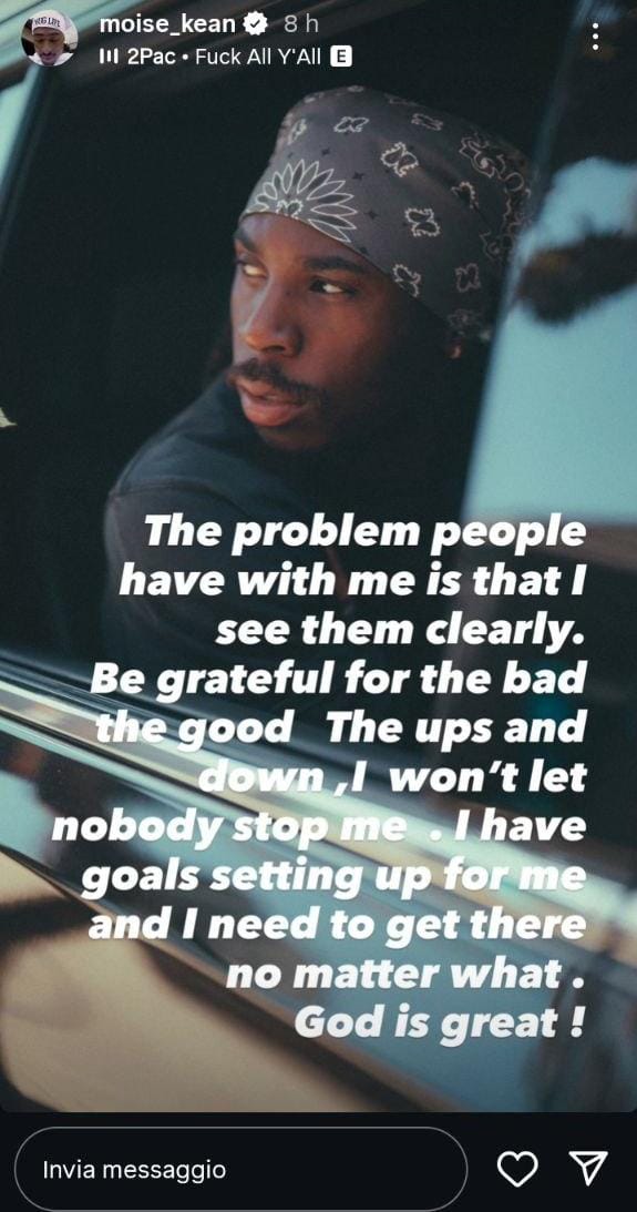 Kean su instagram: "Obiettivi chiari da raggiungere a ogni costo"