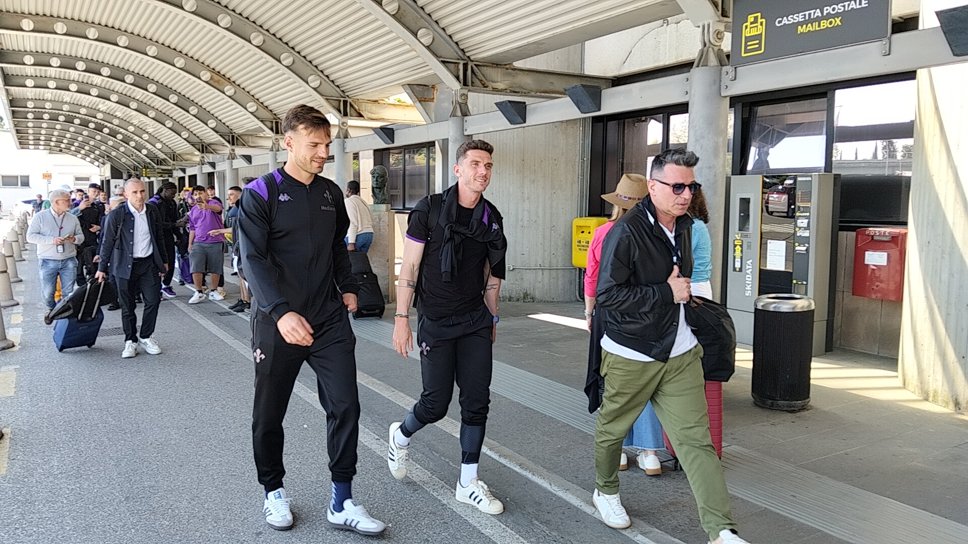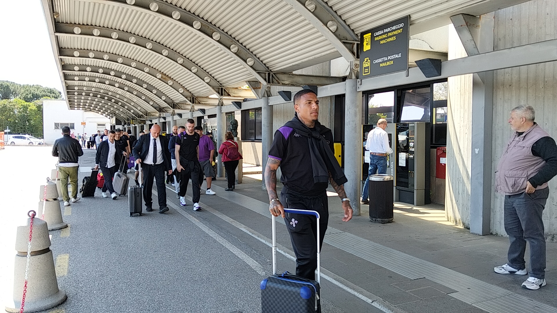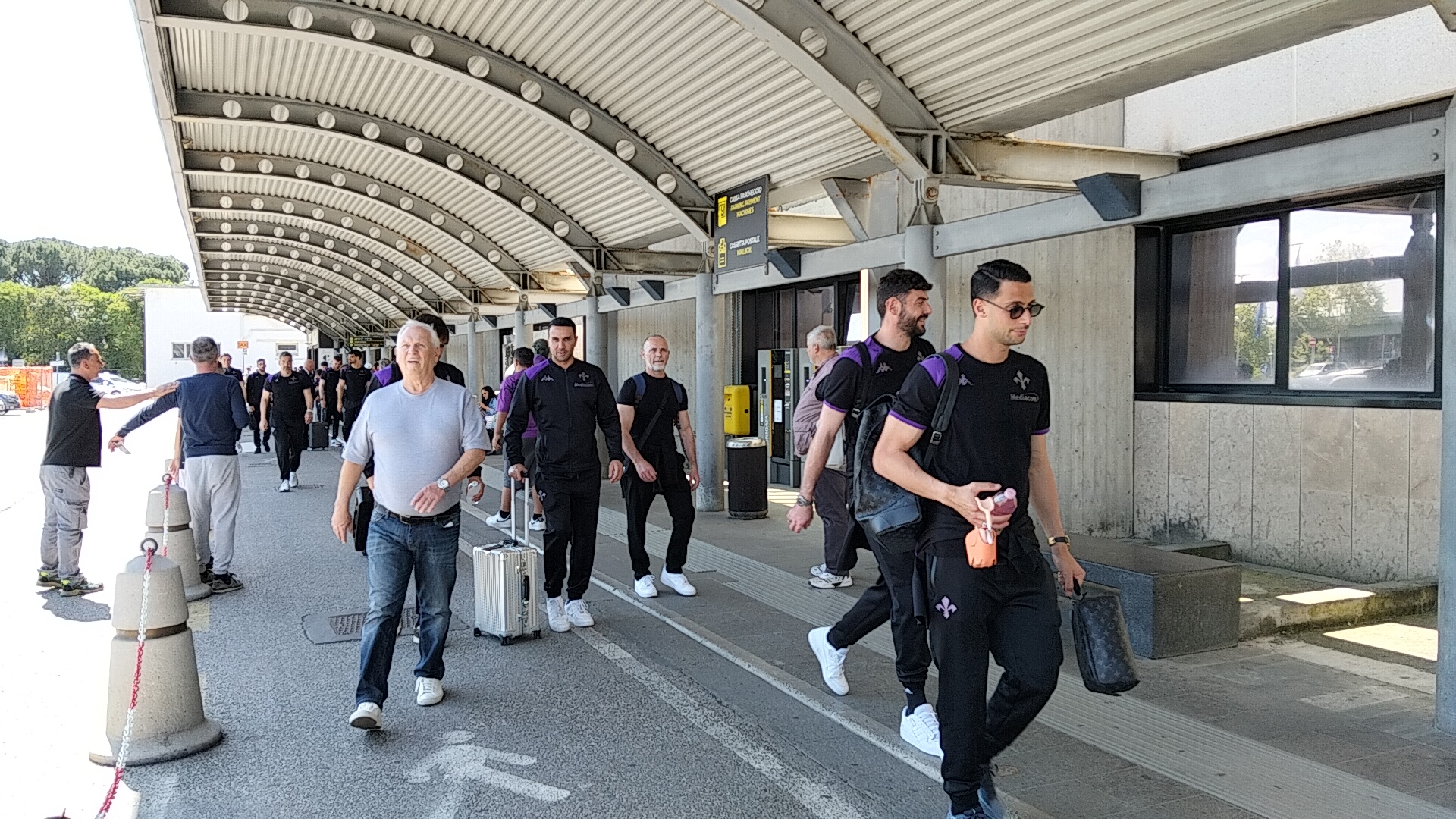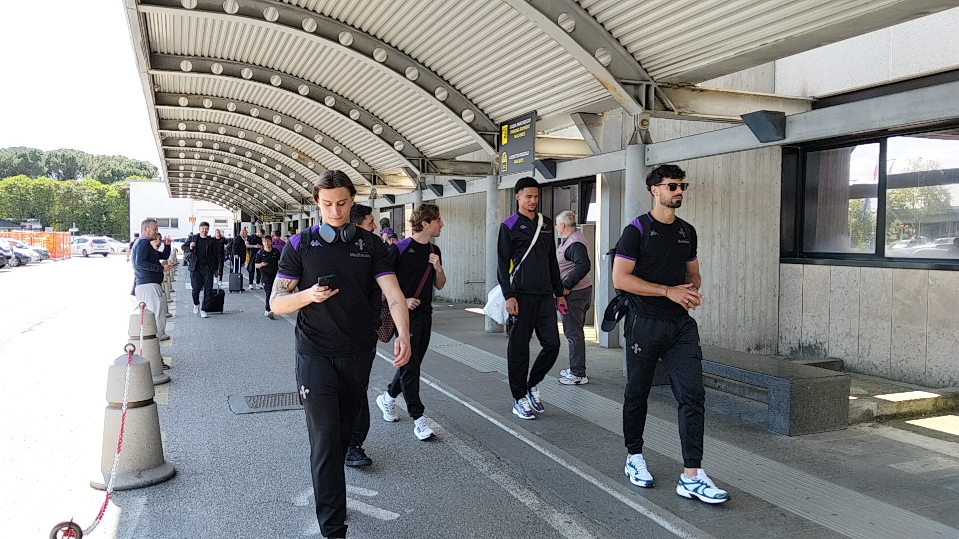 Ci siamo. La Fiorentina parte in questi istanti (ore 15 circa) alla volta di Siviglia per la semifinale di andata di Conference League in programma domani (ore 21) al Benito Villamarin. Per il primo match contro il Real Betis Raffaele Palladino ha recuperato Andrea Colpani ma soprattutto Moise Kean (qui l'elenco dei convocati), ma il tecnico viola vuole a sé tutti, anche gli indisponibili. Confermata anche la presenza di Danilo Cataldi nonostante la rifinitura fatta a parte stamani. Partono con la squadra, oltre al dt Roberto Goretti e al dg Alessandro Ferrari, anche Pablo Marì e Cher Ndour, non inseriti in lista Uefa, oltre a Edoardo Bove, comunque a fianco della squadra. L'unico della rosa che rimane a Firenze è Dodo, che dovrà essere - come raccontato da ieri - valutato nei prossimi giorni dopo l'operazione all'appendicite di venerdì scorso. Queste le foto realizzate dall'aeroporto di Peretola.