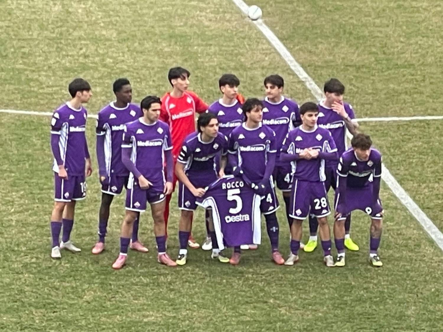 La Fiorentina Primavera è in campo in questi minuti a Genova per il match coi rossoblù valido per la ventunesima giornata di campionato. Prima della partita la squadra viola ha esposto una maglia con scritto "Rocco" in memoria del presidente Commisso, scomparso nella notte tra venerdì e sabato. Questa la foto realizzata da FirenzeViola.it: