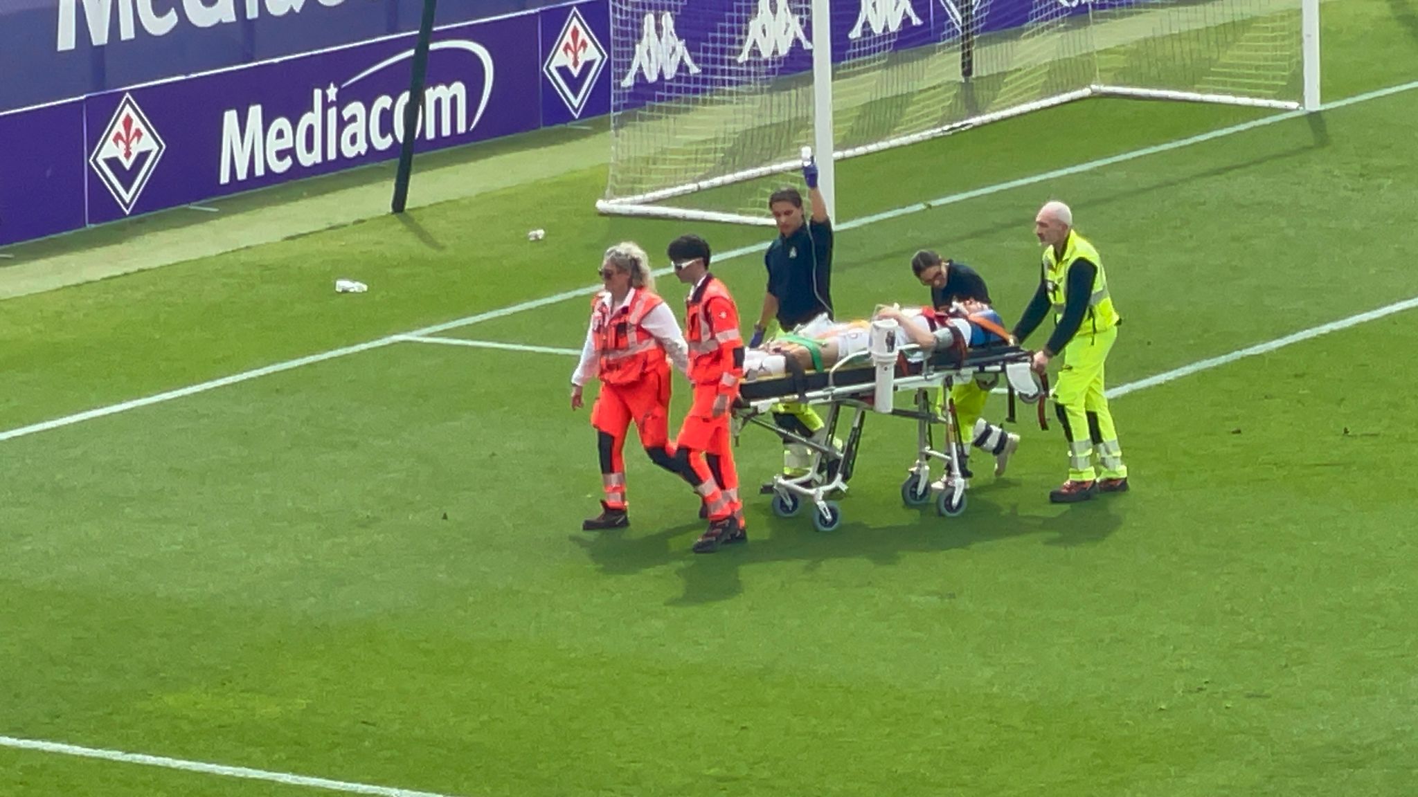 Attimi di paura al Viola Park nel corso della sfida tra la Fiorentina Primavera e il Sassuolo. Al minuto numero 69 Bertolini ha colpito in pieno volto Vezzosi, giocatore neroverde, nel tentativo di eseguire una rovesciata. Il giocatore ospite e rimasto svenuto a terra con il volto insanguinato ed è stato prontamente soccorso. Vezzosi ha ripreso per fortuna conoscenza ma è stato ovviamente trasportato in ambulanza verso l'ospedale di Careggi. Il gioco è stato fermato per circa 15 minuti mentre Bertolini è stato espulso per gioco pericoloso. Queste le immagini del giocatore trasportato via in barella: