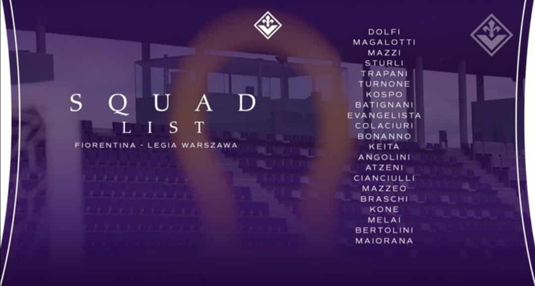 Mister Capparella ritroverà molti dei suoi pupilli con cui, lo scorso anno, ha sfiorato la vittoria al Torneo di Viareggio: tra questi, Atzeni, Angiolini, Bonanno e tanti altri. In caso di parità nel doppio confronto, le squadre si affronteranno direttamente ai calci di rigore. Ecco la lista dei convocati resa nota dalla Fiorentina durante la trasmissione "Buona sera Viola Park".