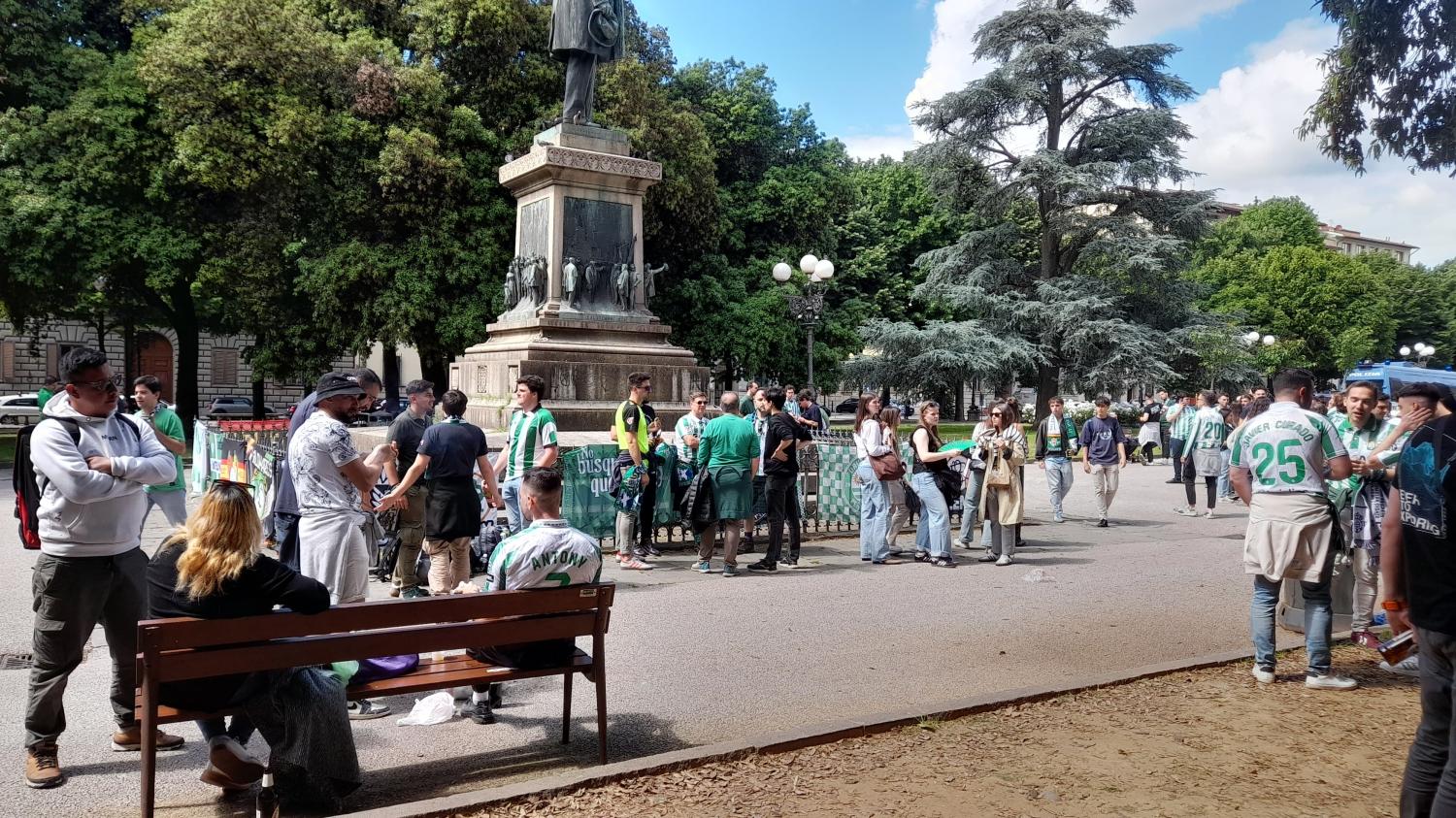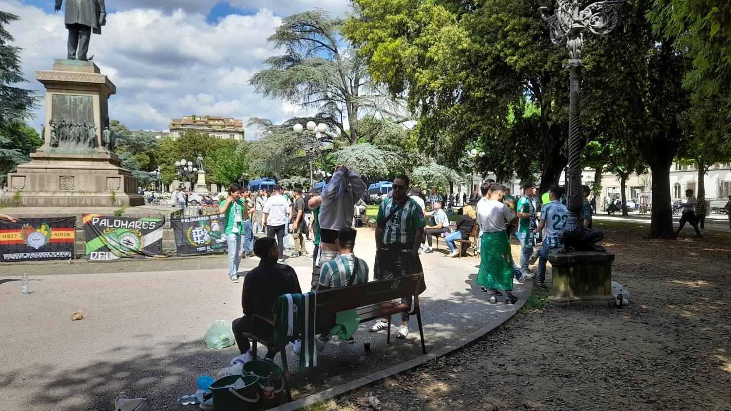 Tifosi del Betis in Piazza Indipendenza: gioia e serenità prima di avviarsi al Franchi