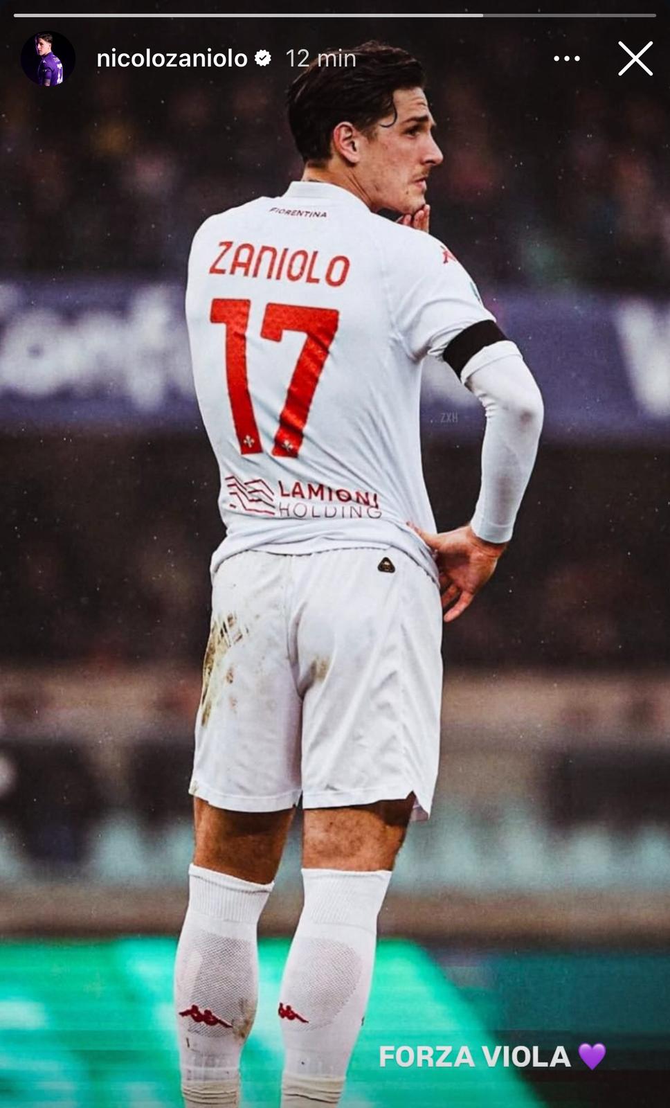 Nicolò Zaniolo tramite i suoi social ha pubblicato una foto nelle sue storie Instagram con la maglia della Fiorentina. In un momento delicato per la squadra di Palladino, l'ex Atalanta ha scritto "Forza Viola" che mostra come il calciatore sia sia perfettamente calato nella realtà viola. Di seguito l'immagine.