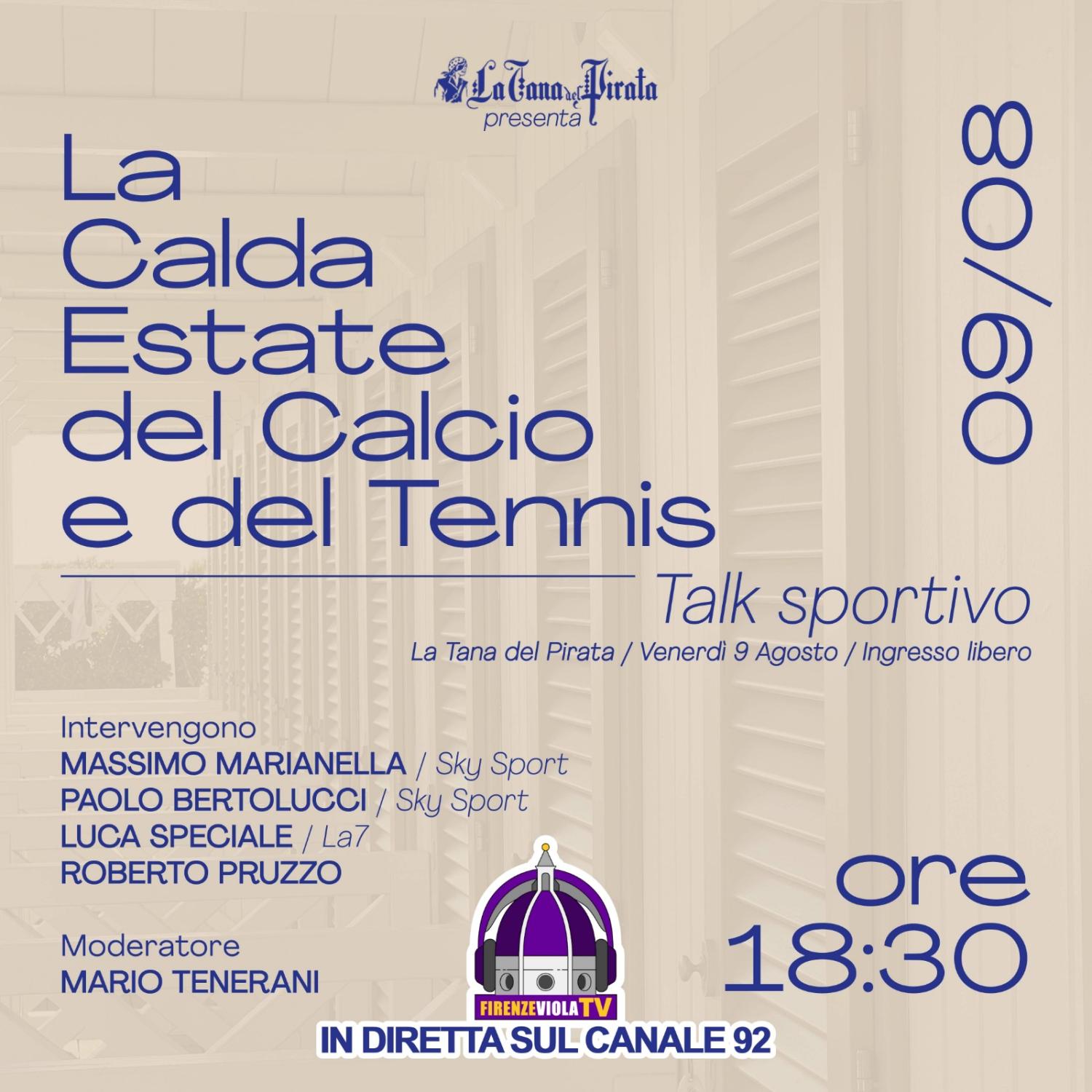 Prosegue anche oggi, mercoledì 7 agosto 2024, il consueto appuntamento con Radio FirenzeViola, visual-web radio interamente curata dalla redazione di FirenzeViola.it. Dalle 18.30 ecco il nostro show dal litorale toscano, col talk organizzato a Marina di Castagneto Carducci, alla Tana del Pirata, insieme a tanti volti della radio e ospiti del mondo viola e non solo. Per interagire con noi è possibile mandare messaggi o note audio su WhatsApp al 3487513933, mentre per intervenire in diretta il numero da chiamare è lo 0557711171. Vi ricordiamo che potrete anche seguirci in tv, sul canale 92 del digitale terrestre!