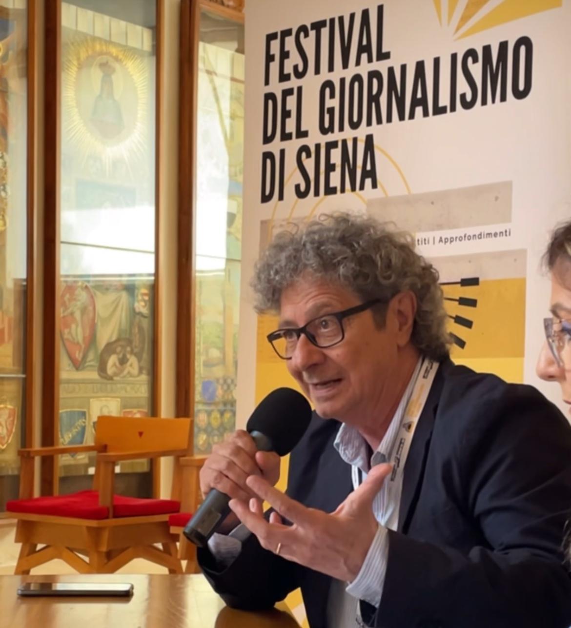 Presente ieri a Siena, in occasione della giornata inaugurale del Festival del Giornalismo, lo storico radiocronista sportivo di RadioRai Riccardo Cucchi ha parlato a margine del corso "Dalla radio al podcast: come cambia il linguaggio" al quale ha partecipato come relatore anche il nostro vicedirettore Andrea Giannattasio.