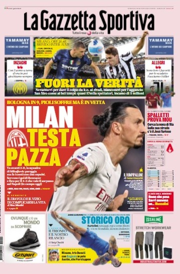 All'alba di una domenica di grande calcio le prime pagine dei quotidiani sportivi danno grande spazio al derby d'Italia di oggi, ovvero allo scontro di San Siro tra Inter e Juventus. Focus anche sulle altre partite del nono turno, con particolare attenzione per l'altro big match di giornata, la sfida tra Roma e Napoli. Diverse interviste e voci di tifosi illustri di queste quattro squadre. Sfogliando le pagine dei giornali in edicola, troviamo anche uno spazio dedicato alla Fiorentina e alla partita di oggi col Cagliari, con gran risalto dato all' ipotesi di accoglienza che i tifosi viola riserveranno a Dusan Vlahovic.