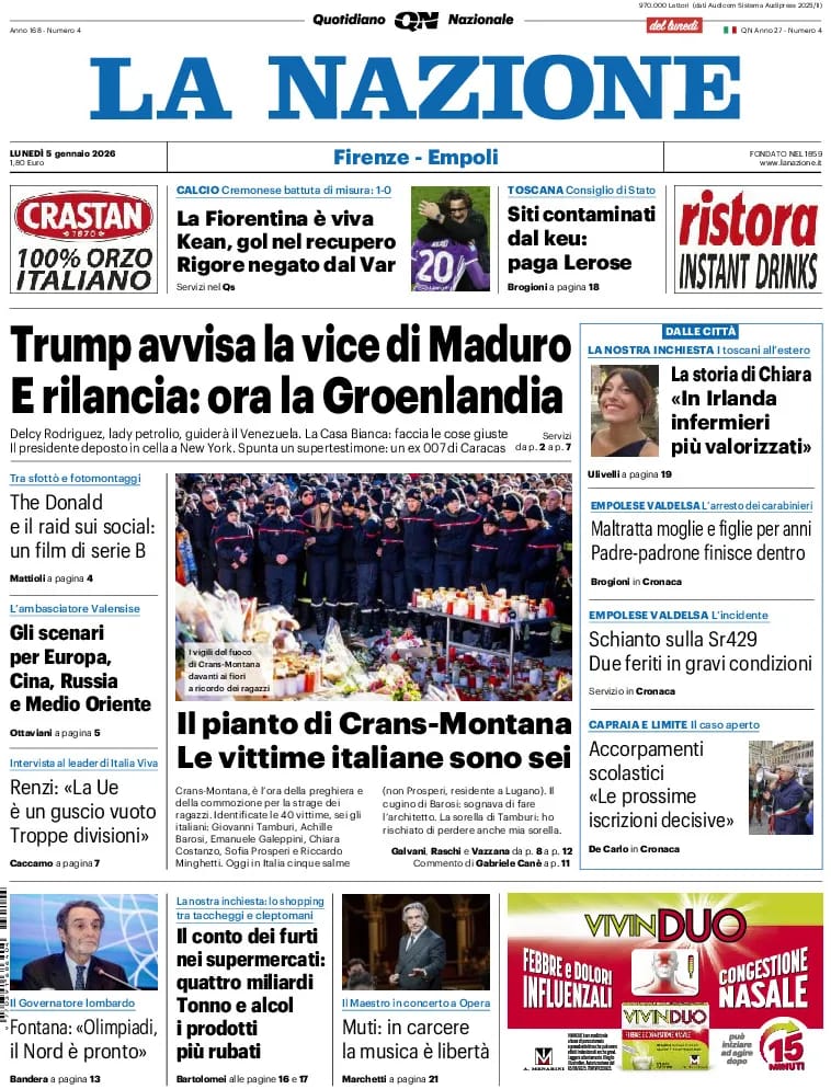 Queste le prime pagine dei principali quotidiani sportivi nazionali e locali in edicola oggi, lunedì 5 gennaio 2026.
